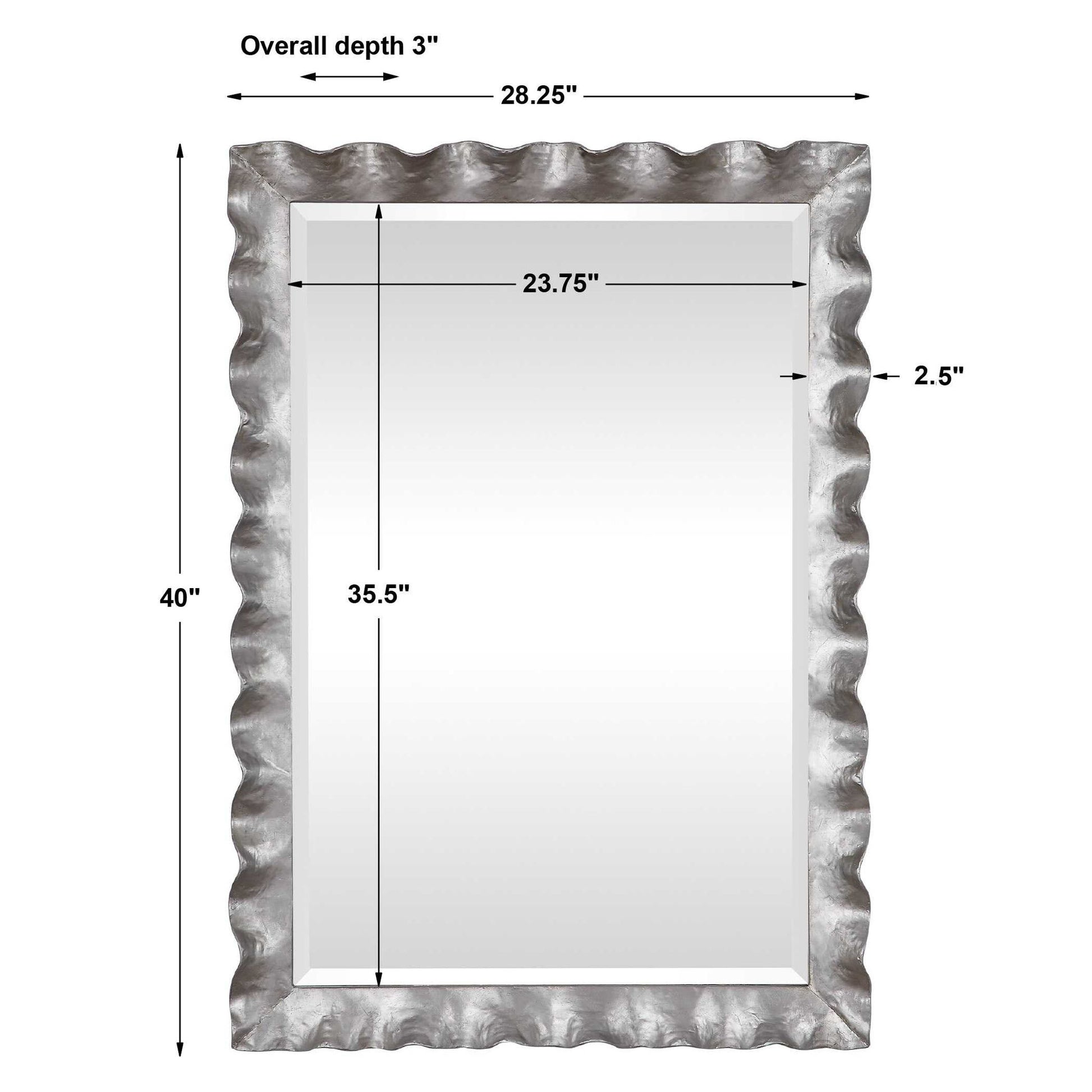 This Mirror Features A Hand Forged Metal Frame Finished In Silver Leaf With An Organic, Scalloped Edge Design. A Generous 1 1/4" Bevel Is Added To This Piece, Which May Be Hung Horizontal Or Vertical.