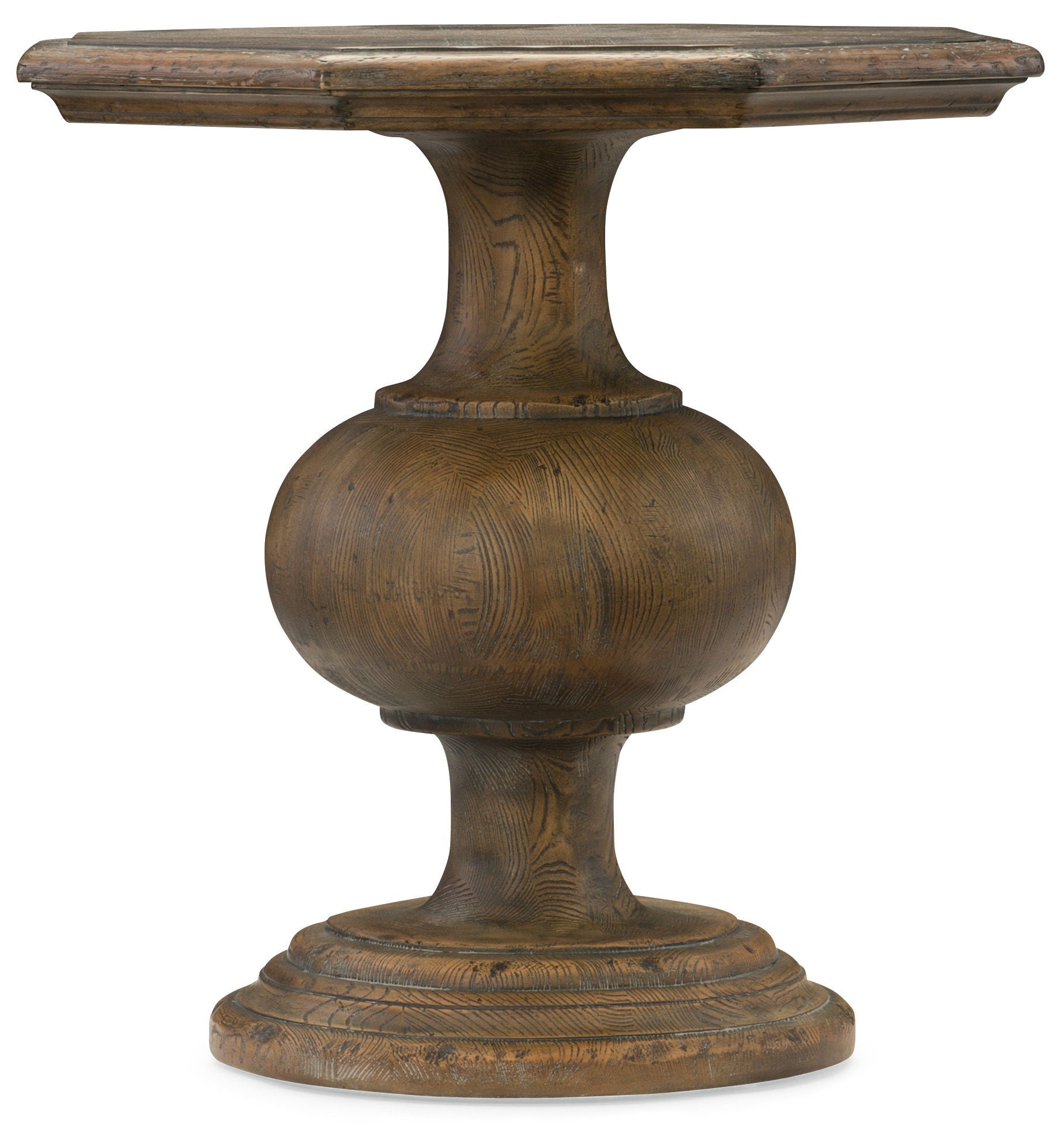 The chunky pedestal base, combined with the flat-cut rustic white oak veneer that is cracked before the finished is applied to appear seasoned over time, imparts an authentic American character in the Mason End Table. Finish is a timeworn saddle brown color, accented with an aged black.