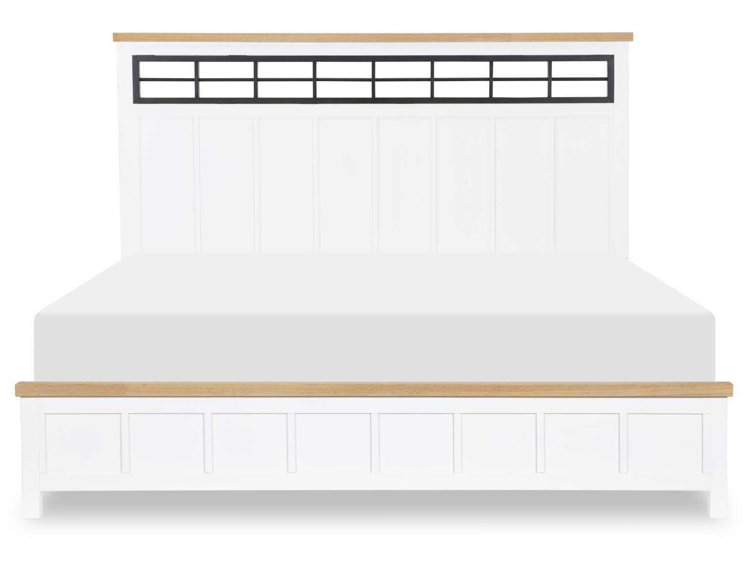 Create a space that feels both timeless and refreshingly new with the Horizons bedroom collection. Blending classic Farmhouse style with clean lines and modern function,, this collection is all about comfort,, charm,, and effortless beauty. Finished in a crisp with warm Natural Oak accents,, Horizons brings light and softness to your room while highlighting the natural textures of Oak veneer and Select Hardwood Solids. The look is finished with Iron Black Hardware for a bold,, rustic contrast that adds just the right amount of edge. At the heart of the collection is the Panel Bed,, featuring an elegant iron black fretwork design on the headboard - an eye-catching detail that brings texture and personality to your space. Available in twin,, full,, queen,, and king,, there's a perfect fit for every size and style of home. Thoughtful craftsmanship includes French dovetail drawer construction and ball bearing metal side glides,, ensuring each drawer opens smoothly and stands up beautifully to everyday use.