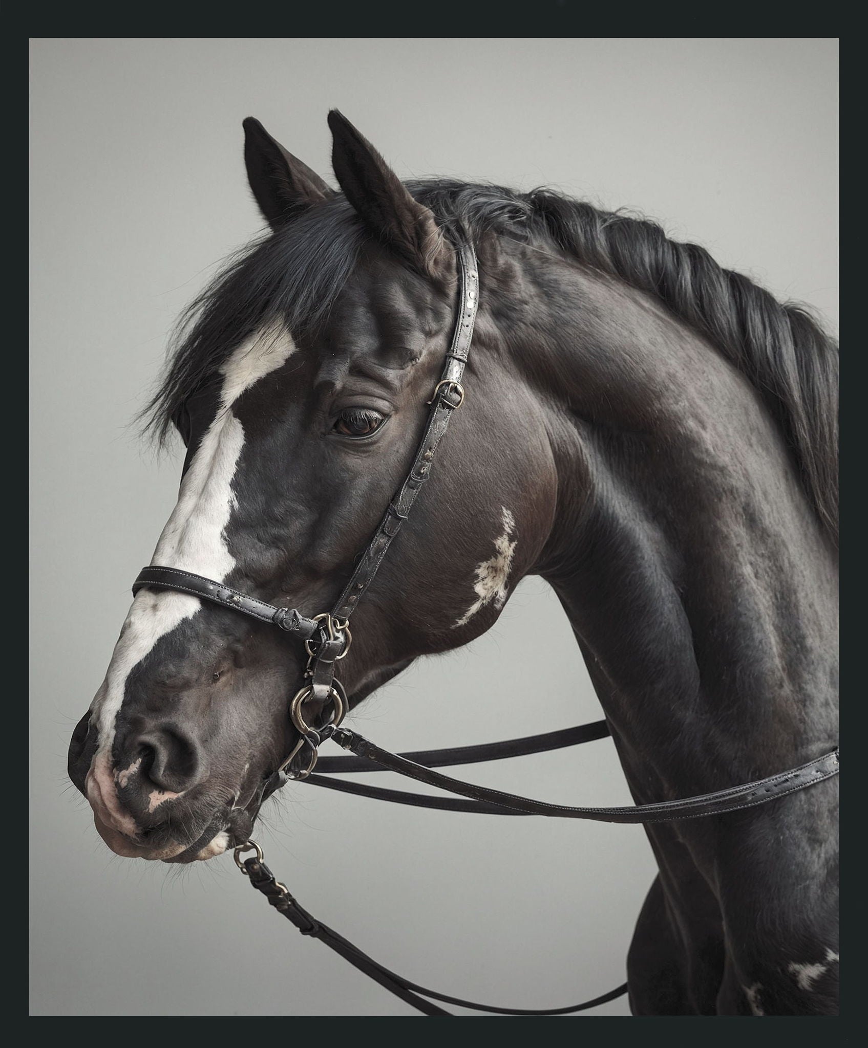 A perfect balance of strength and beauty, this horse photograph captivates with its refined composition. Encased in a thick black shadow frame, it brings sophistication and charm to both modern and traditional spaces.