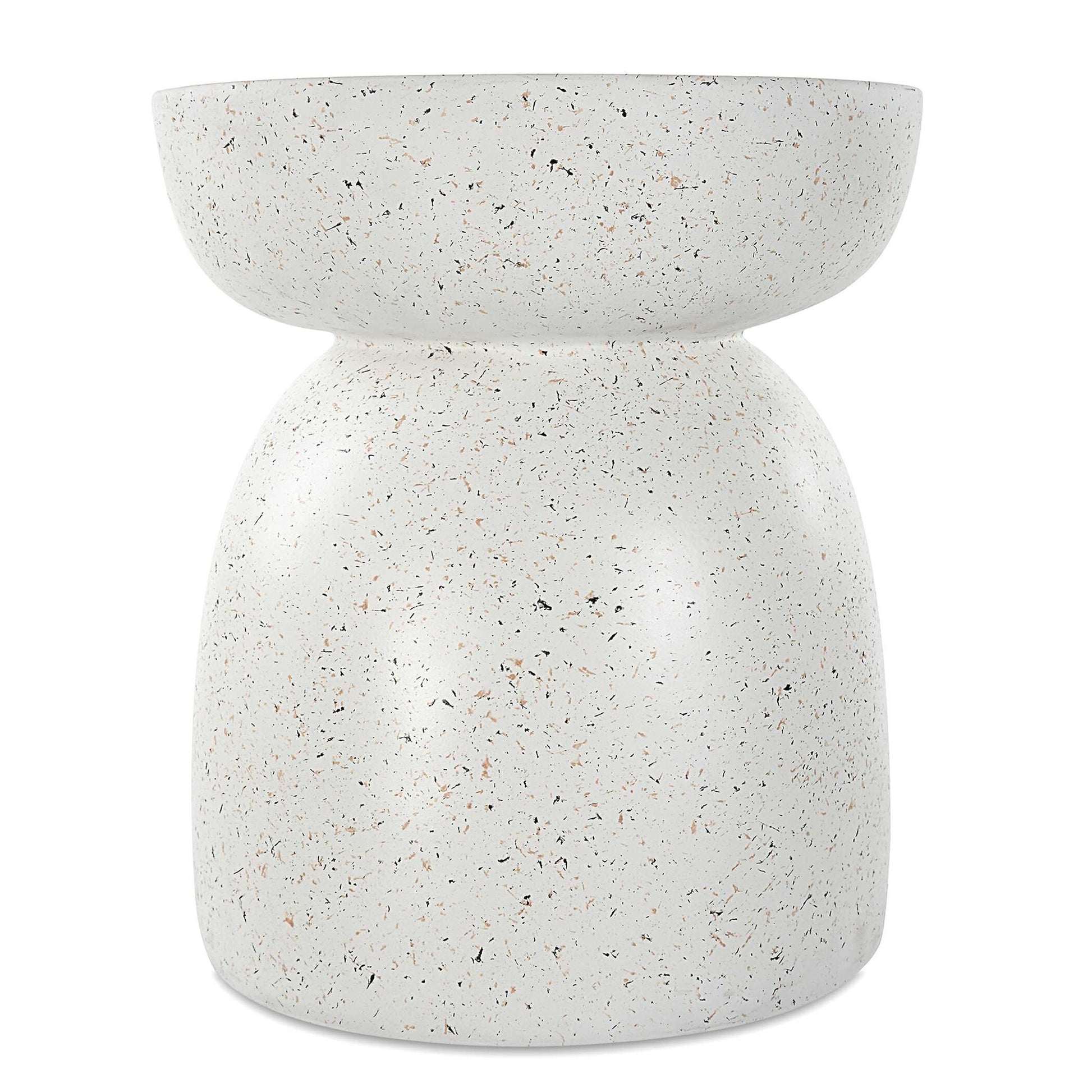 A Refreshing Accent Table Formed From Cast Resin With A Matte White Finish And Subtle Hints Of Earthy Terrazzo Specs.