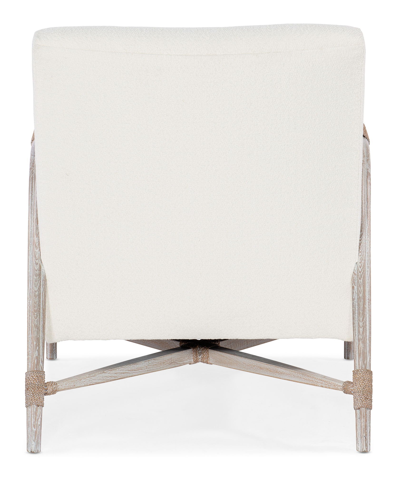 With a mid-century modern retro vibe updated for today, the Isla Lounge Chair has a tight back and loose seat cushion upholstered in the Macrame Artic fabric. The light wood finished arms and legs are accented by rope wrapping on the arms.