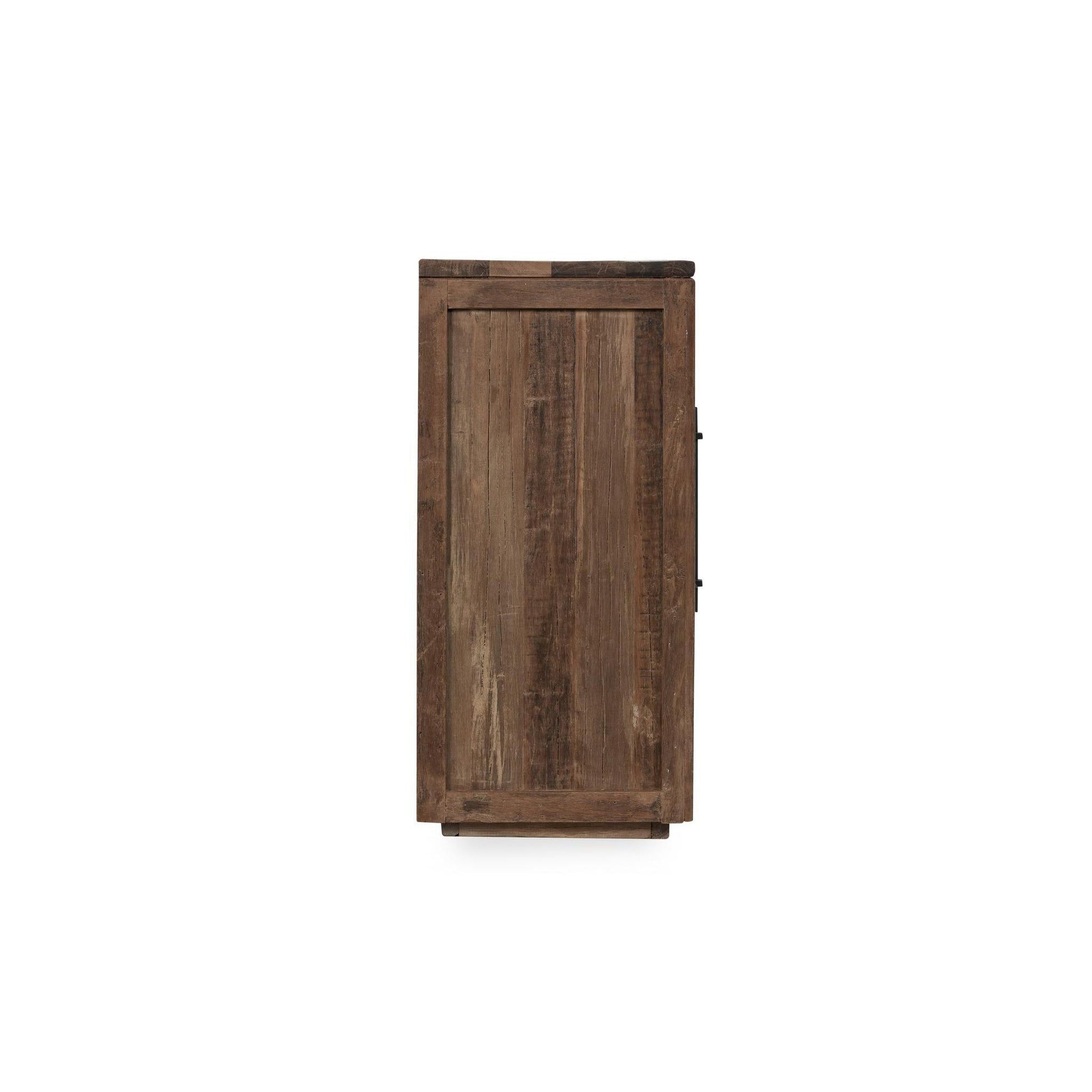 Showcase timeless craftsmanship with this reclaimed wood sideboard with glass doors. Crafted from eco-friendly salvaged wood, it features a rich natural finish and industrial-inspired black metal hardware. Four framed glass panel doors reveal spacious shelving, perfect for displaying dinnerware, books, or collectibles. Ideal for dining rooms, living spaces, or entryways, this rustic storage cabinet brings warmth, texture, and sustainable charm to modern farmhouse, industrial, or vintage-inspired decor.