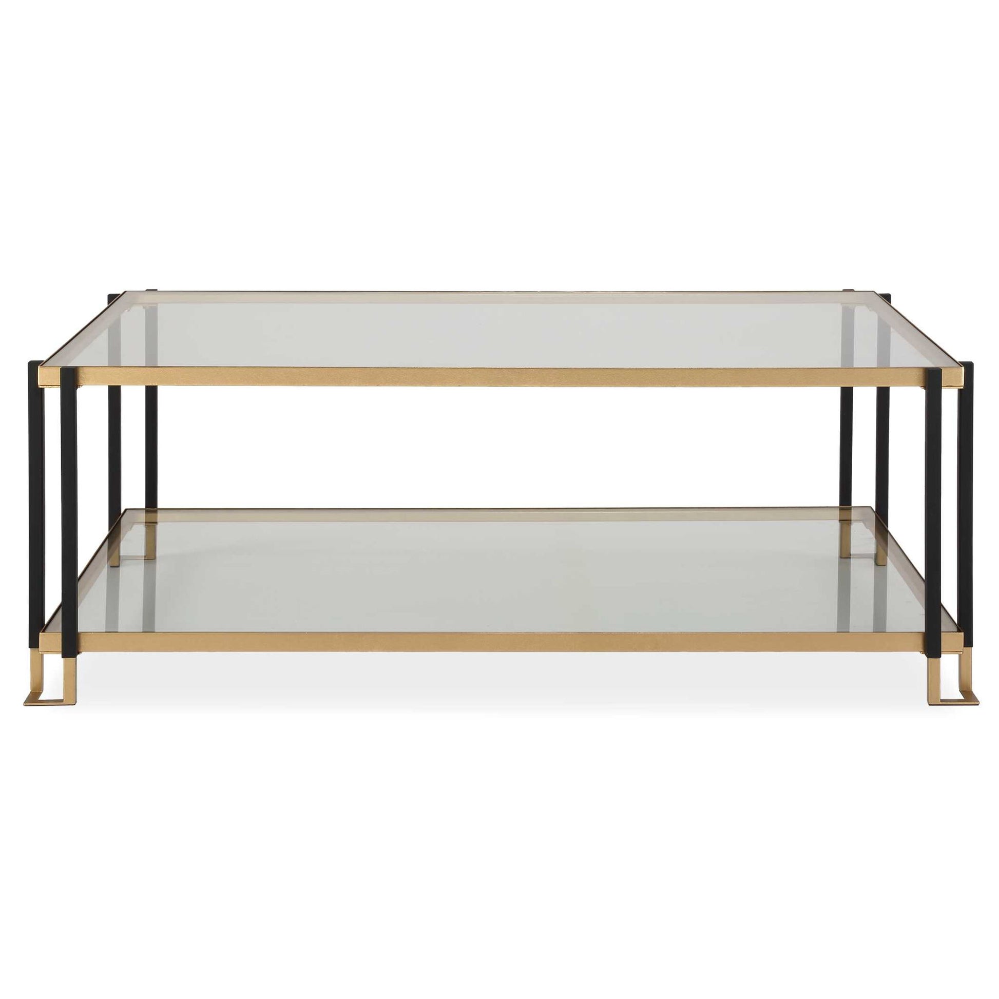 Featuring A Clean Lined Solid Iron Frame, This Contemporary Coffee Table Is Finished In A Two-toned Matte Black And Gold Leaf. Has Two Tempered Glass Shelves.