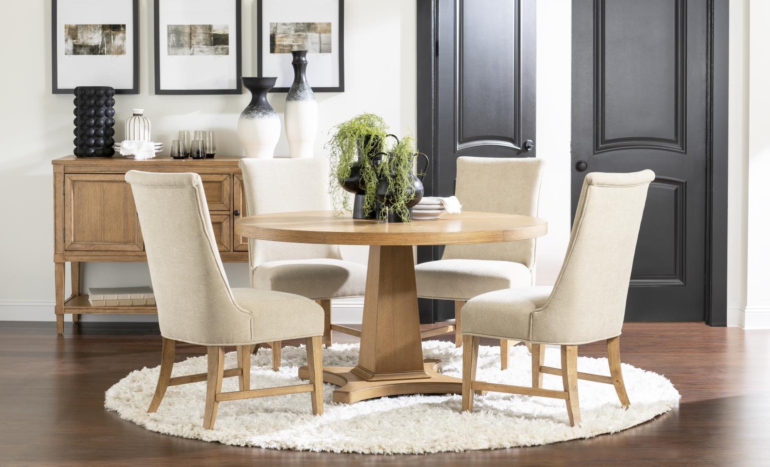 Linden - Complete Round Pedestal Table - Honeyed Oak
