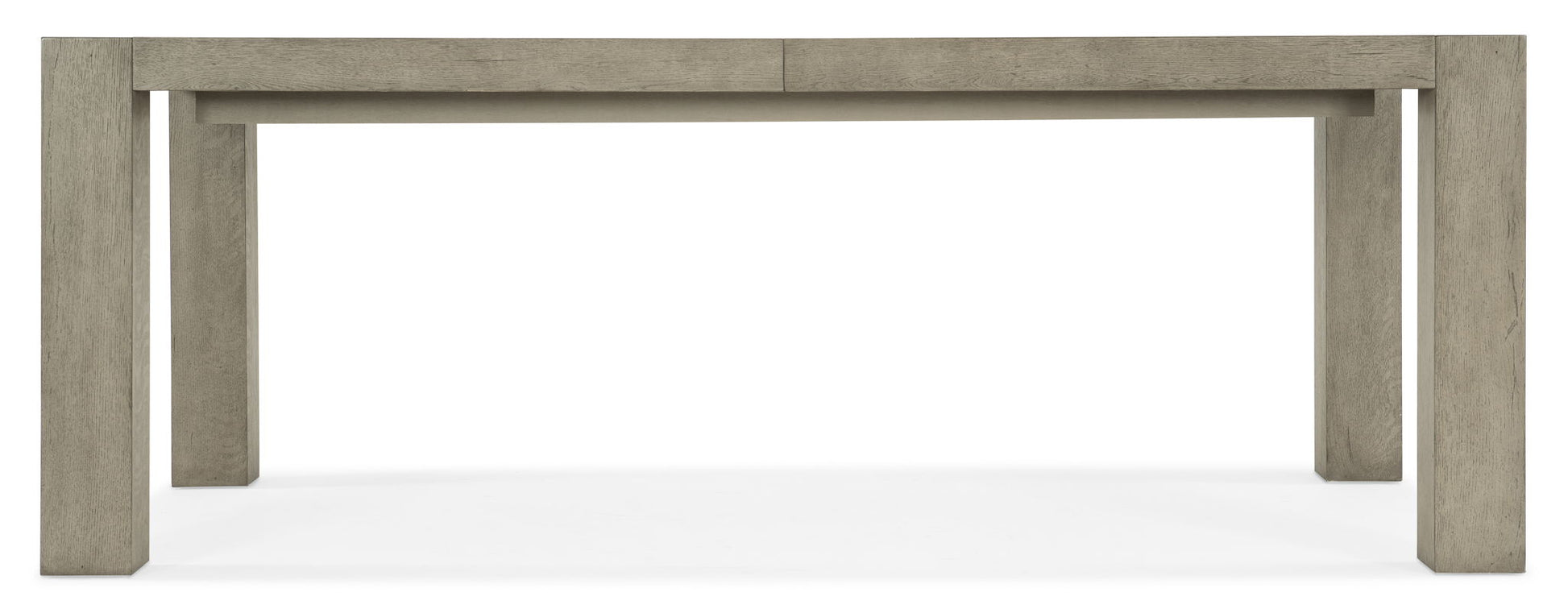 With a rustic, weathered finish, clean lines and an organic grain celebrating the patterns of nature, the North Fork Rectangle Dining Table extends up to 106 inches long when the 24-inch leaf is used. Crafted of Oak Veneers in a soft smoked gray Mink finish, the table’s serene style and chic chunky legs make it a perfect fit for today’s modern kitchens and dining spaces.