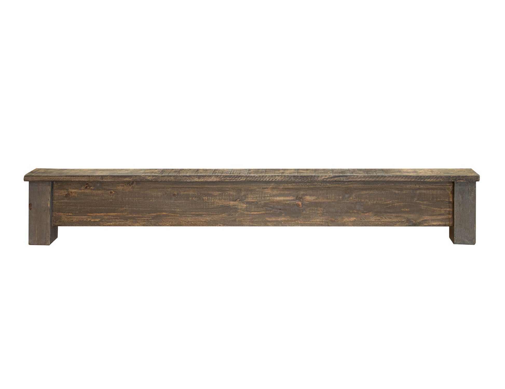 - Multi-step hand-painted water-based acrylic lacquer finish in gray and brown tones for an updated “reclaimed wood” look.