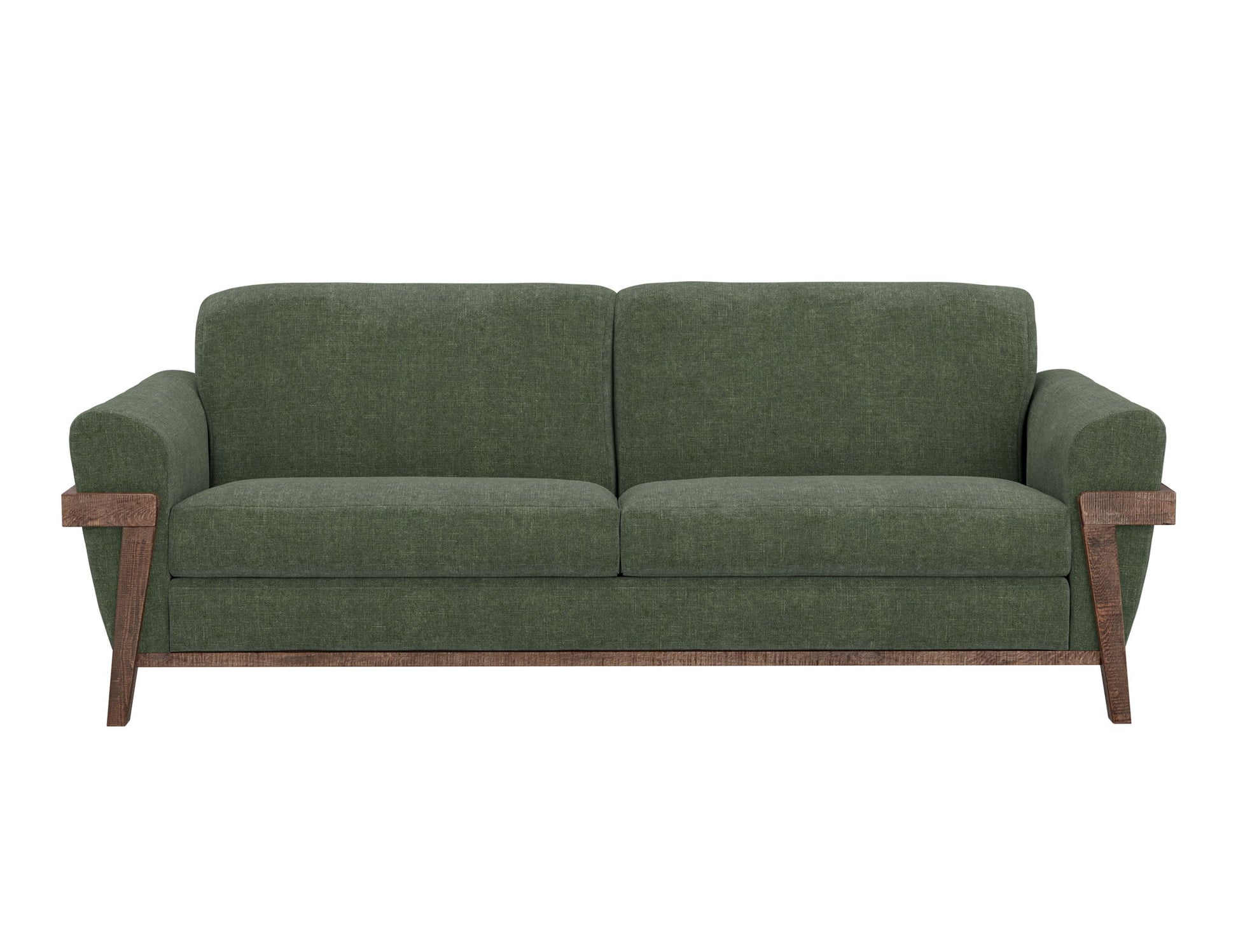 Wooden Frame & Base, Sofa. Introducing our captivating Loft Brown Collection, where traditional design seamlessly merges with mid-century modern details in this stunning transitional piece. With its distinctive exposed pine wooden legs and frame, retro-inspired rolled arms, and meticulous craftsmanship, this collection features solid wood and 15mm-thick, 5-layer plywood construction, ensuring both the strength and durability of the frames.