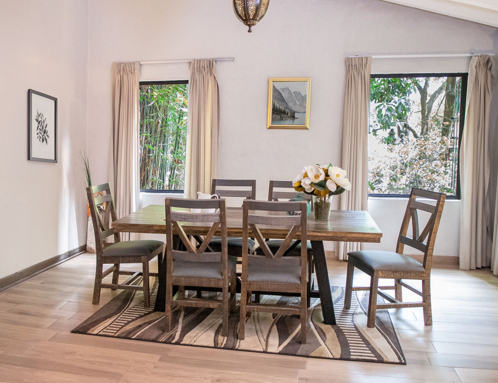 - Multi-step hand-painted water-based acrylic lacquer finish in gray and brown tones for an updated “reclaimed wood” look.