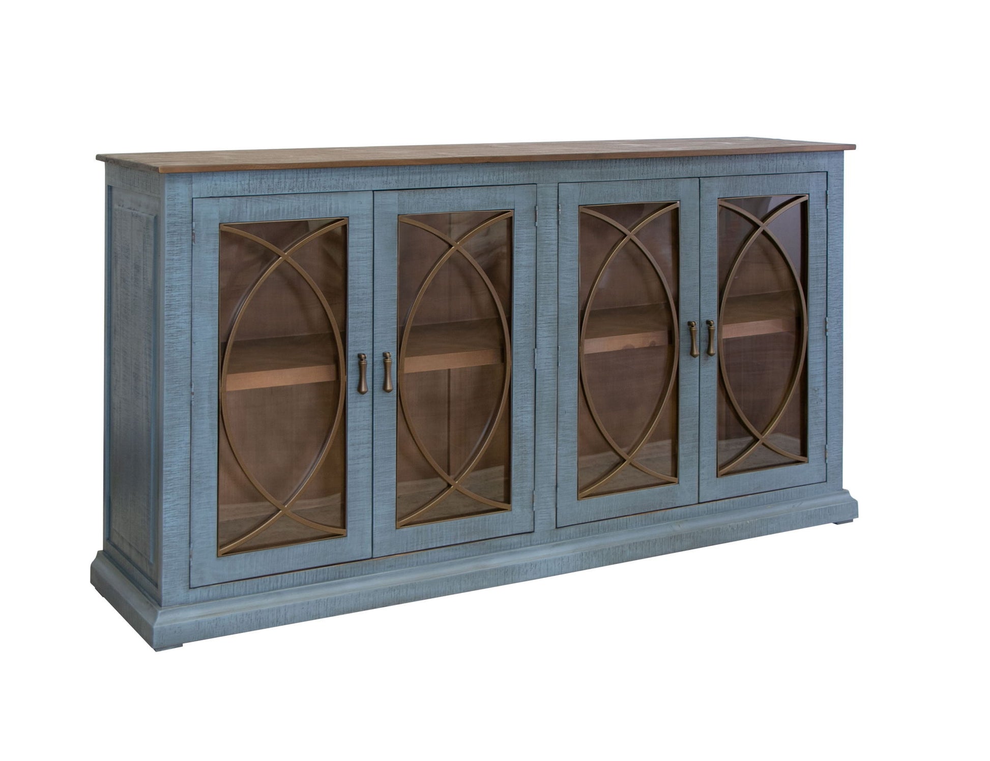 4 Door Console. Introducing the Marlin console, expertly crafted from solid pine wood. This accent console boasts a distinctive, clean-lined design, skillfully finished in a bold tone that elevates it to the status of a statement piece for your room.