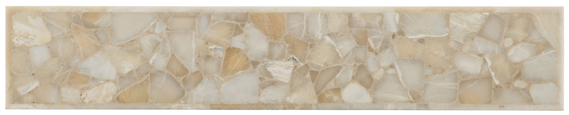 Understated and refined, the slender and stylish Blaire Console Table combines a pewter metal base with a natural tumbled white onyx top.