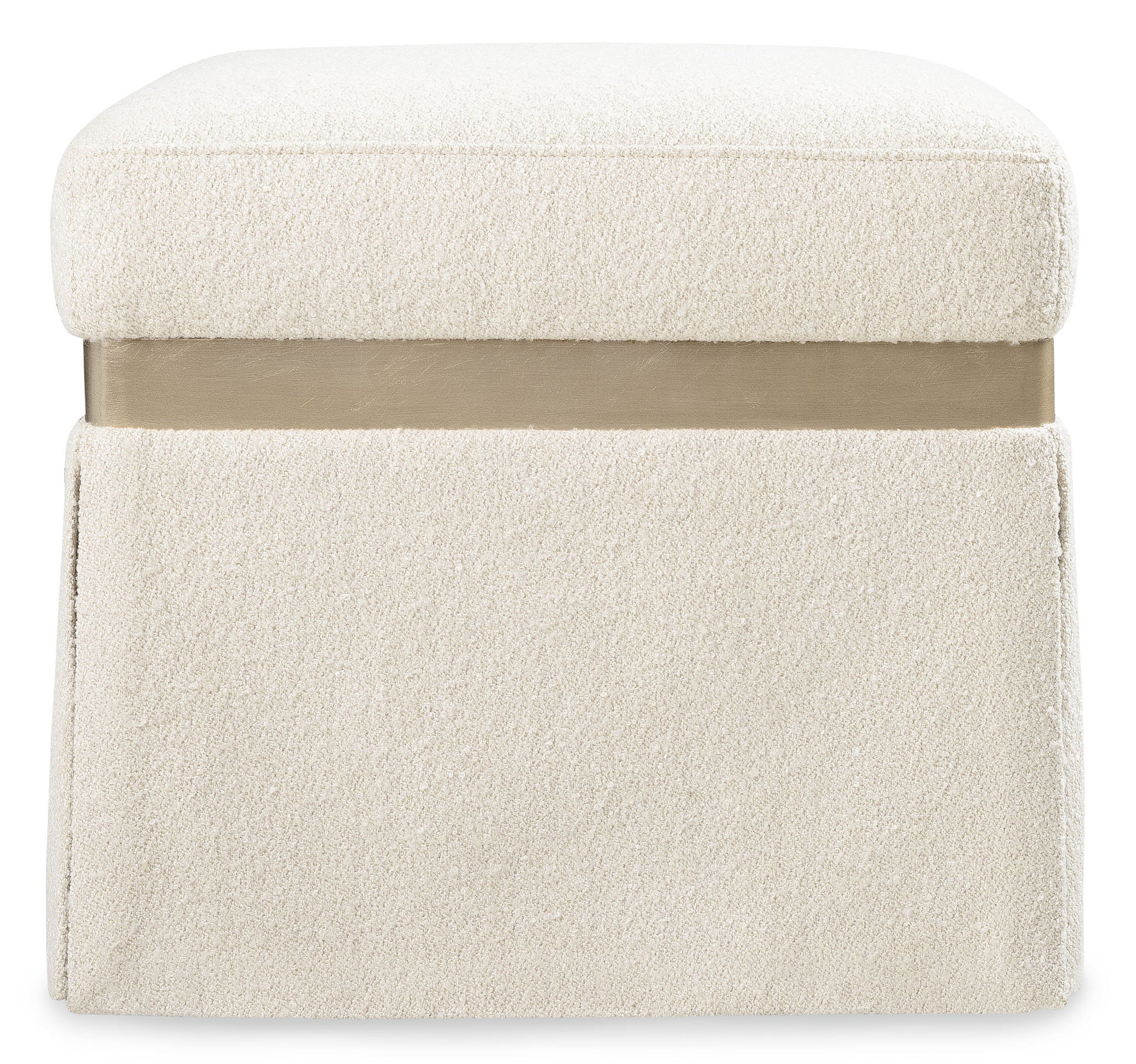 Enhance your living space with the versatile Dream Weaver Pouf from the Melange collection. Upholstered in Inverness Natural fabric, a blend of polyester and linen, this square pouf features champagne wood trim for added elegance. Its skirted style design makes it a functional accent piece that pairs seamlessly with modern and transitional decor. Perfect as a footrest, extra seating, or a stylish accessory, this pouf fits neatly beneath the coordinating Dream Weaver Bar Cabinet for easy storage.