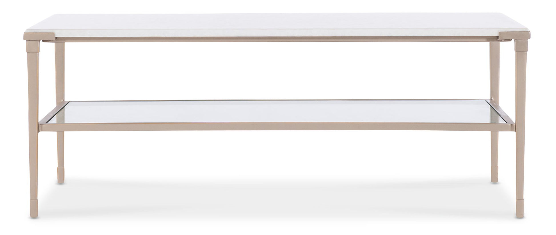 Add elegance and functionality to your living space with the Jen Table from the Melange collection. This rectangular table features a stone top supported by slim, tapered metal legs, offering a sleek and modern design. A convenient glass shelf provides additional storage or display space. Perfect for transitional or contemporary decor, this table blends timeless materials with clean, minimalist styling.