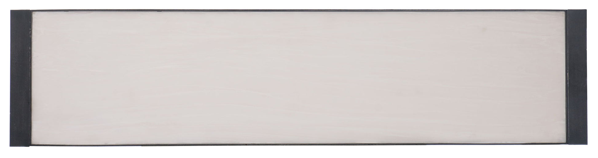 How serene it is. Bring balance and symmetry into your home with the Joni Console, crafted of Oak Veneers and accented in oil-rubbed aluminum trim. Inset top is in resin for durability.