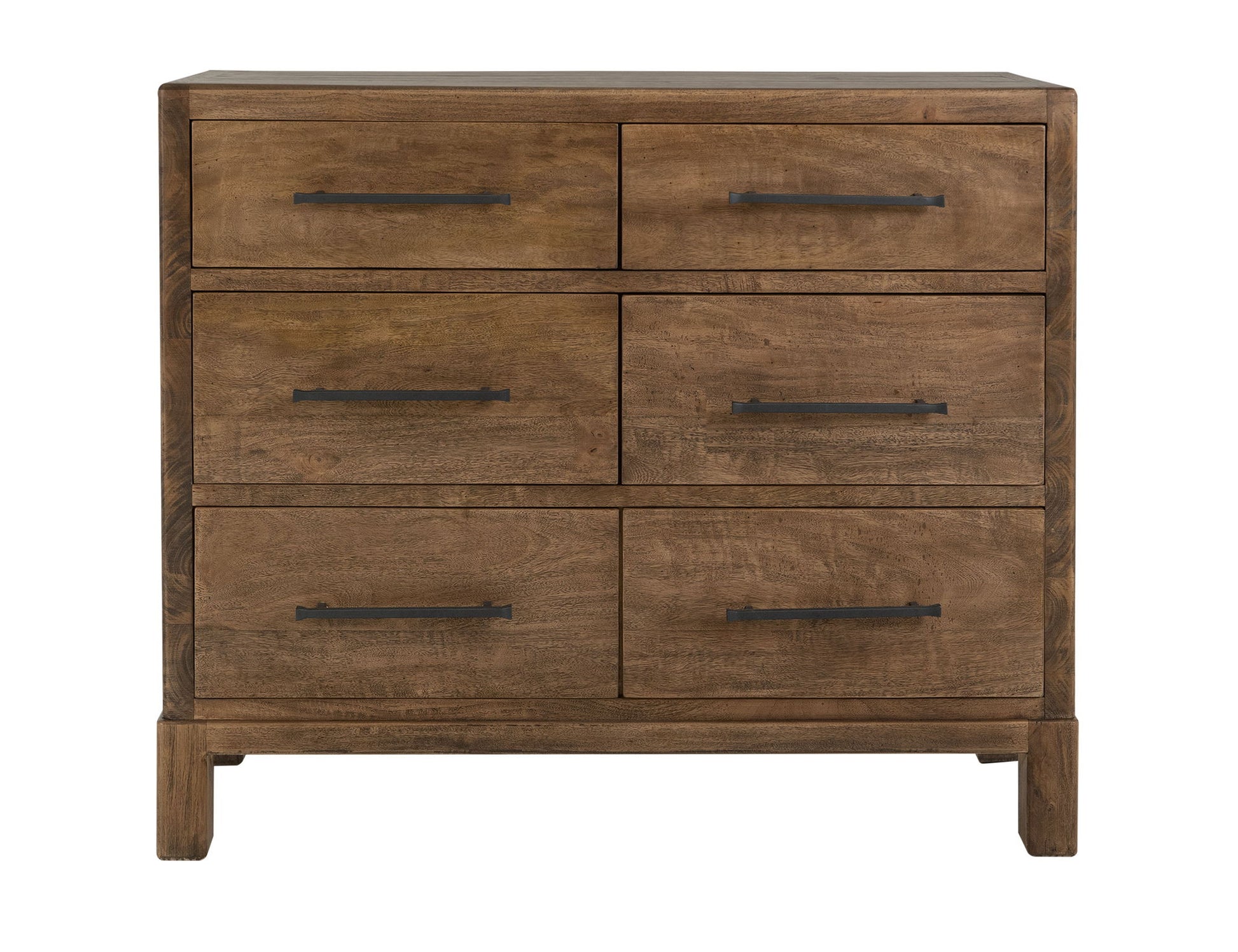 6 Drawer, Dresser. The Merida Collection features an exquisite bedroom set that perfectly fuses sustainability and design, embodying eclectic modern style. Made from environmentally friendly mango and melina wood, it combines beauty and functionality to enhance your space. The brown finish highlights the natural elegance of the wood, creating a serene and inviting atmosphere. The dresser features a minimalist design characterized by clean lines and a rectangular shape; it not only offers practical storage solutions but also enhances the aesthetic appeal of your bedroom with its timeless charm. The dresser stands on four sturdy legs, ensuring stability and durability. The Merida dresser is a versatile addition that complements any bedroom décor