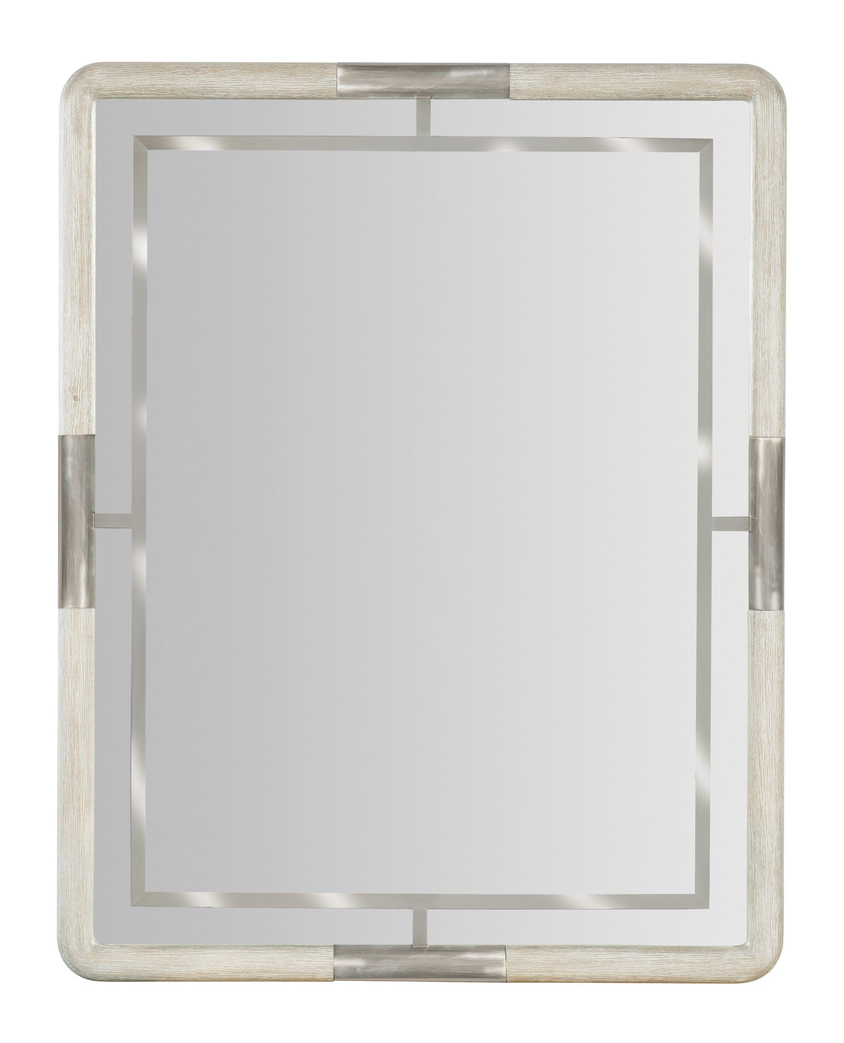 In a timeless compass-like profile, the Modern Mood Landscape Mirror combines Quartered Oak Veneers in the Diamond finish with wire-brush detailing and warm pewter metal accents for a striking focal-point piece.