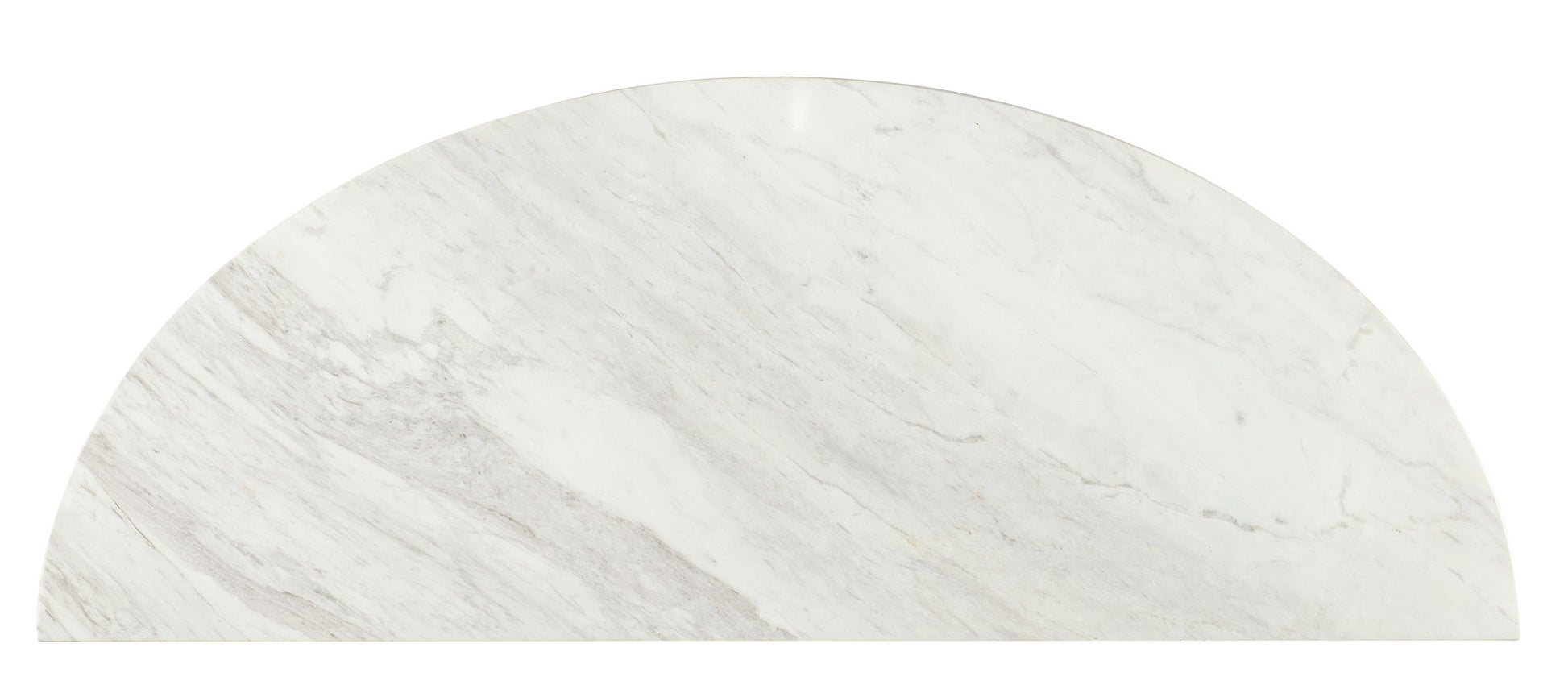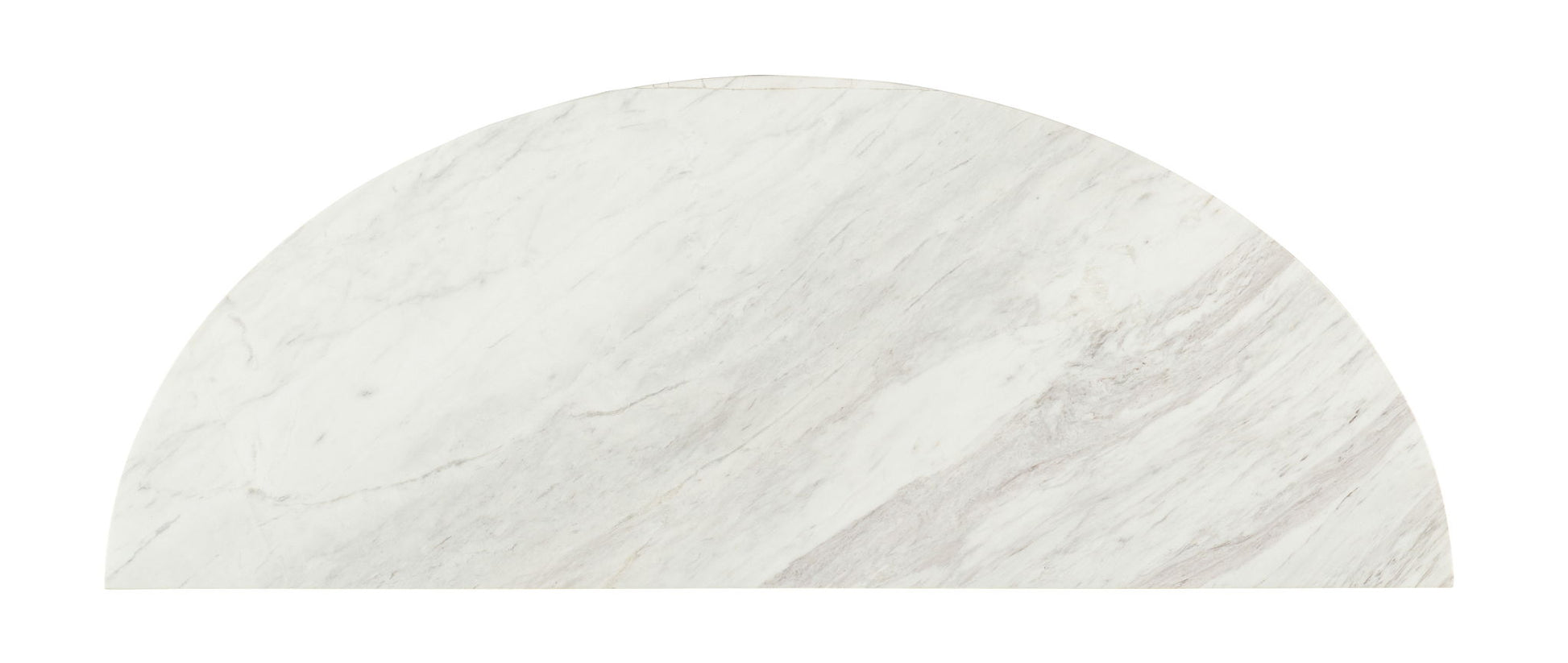 Architectural and timeless with a luxe mixture of materials, the Modern Mood Nightstand is a statement piece. Featuring a demilune shape and two self-closing drawers, the nightstand has a metal frame, legs and slender pulls and a white and gray marble top. The case is crafted of Oak Veneers and finished in the dark Mink color with wire-brush detailing.