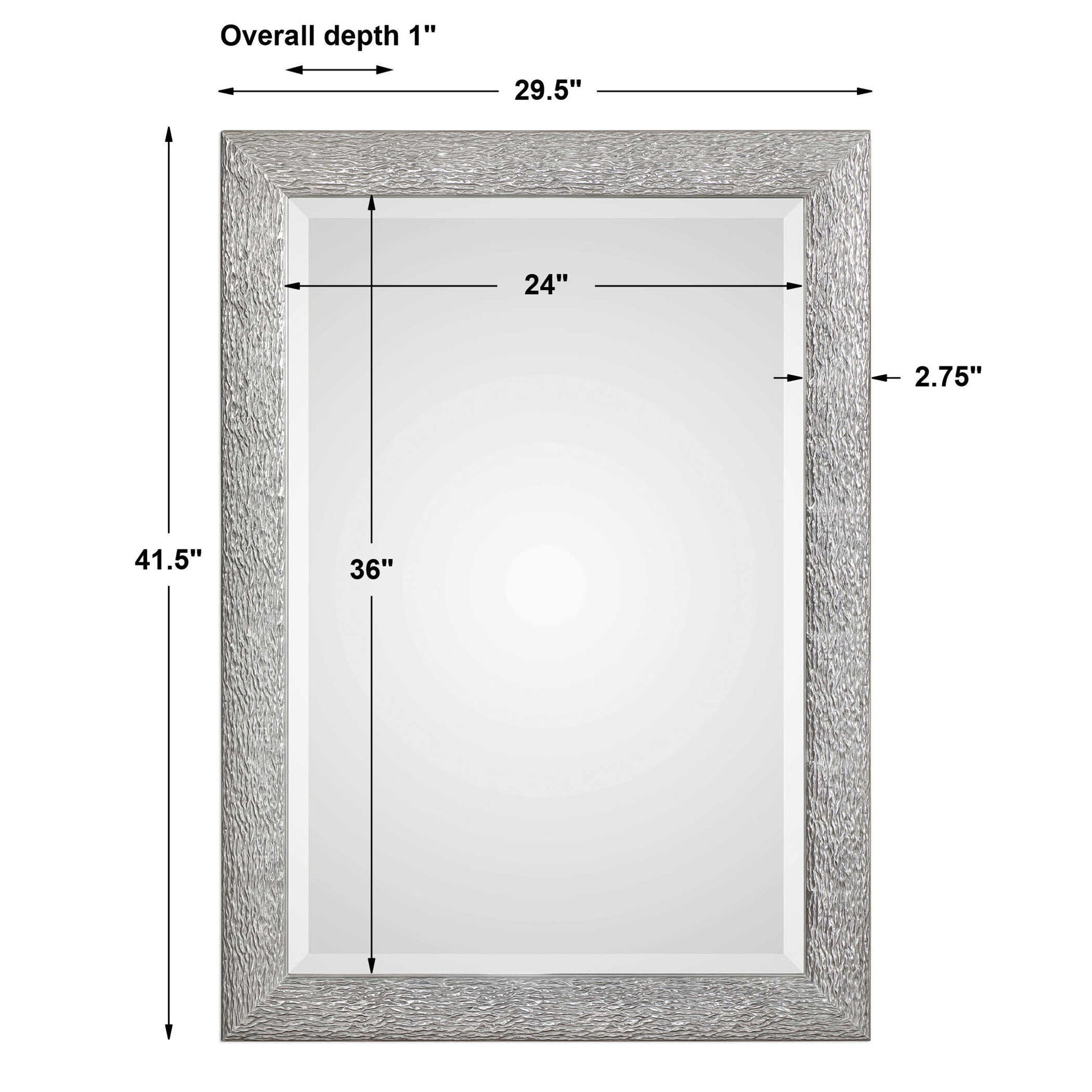 Solid Wood Frame Featuring An Embossed Wavy Texture, Finished In A Metallic Silver With A Light Gray Wash. Mirror Features A Generous 1 1/4" Bevel And May Be Hung Horizontal Or Vertical.