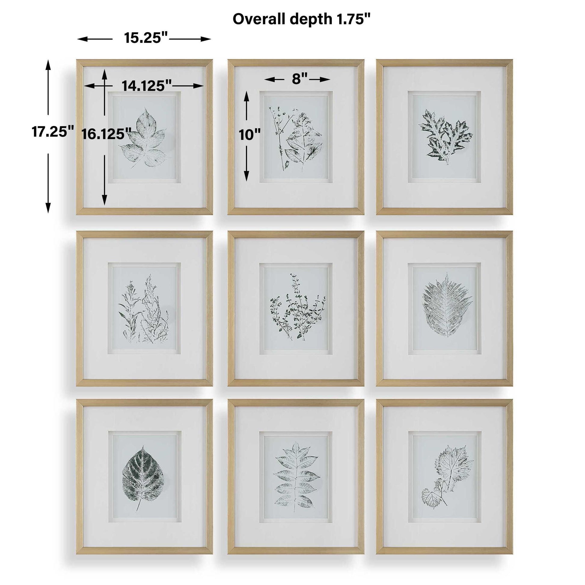 Nature's - Script Framed Botanical Prints (Set of 9) - Gold / Green / White
