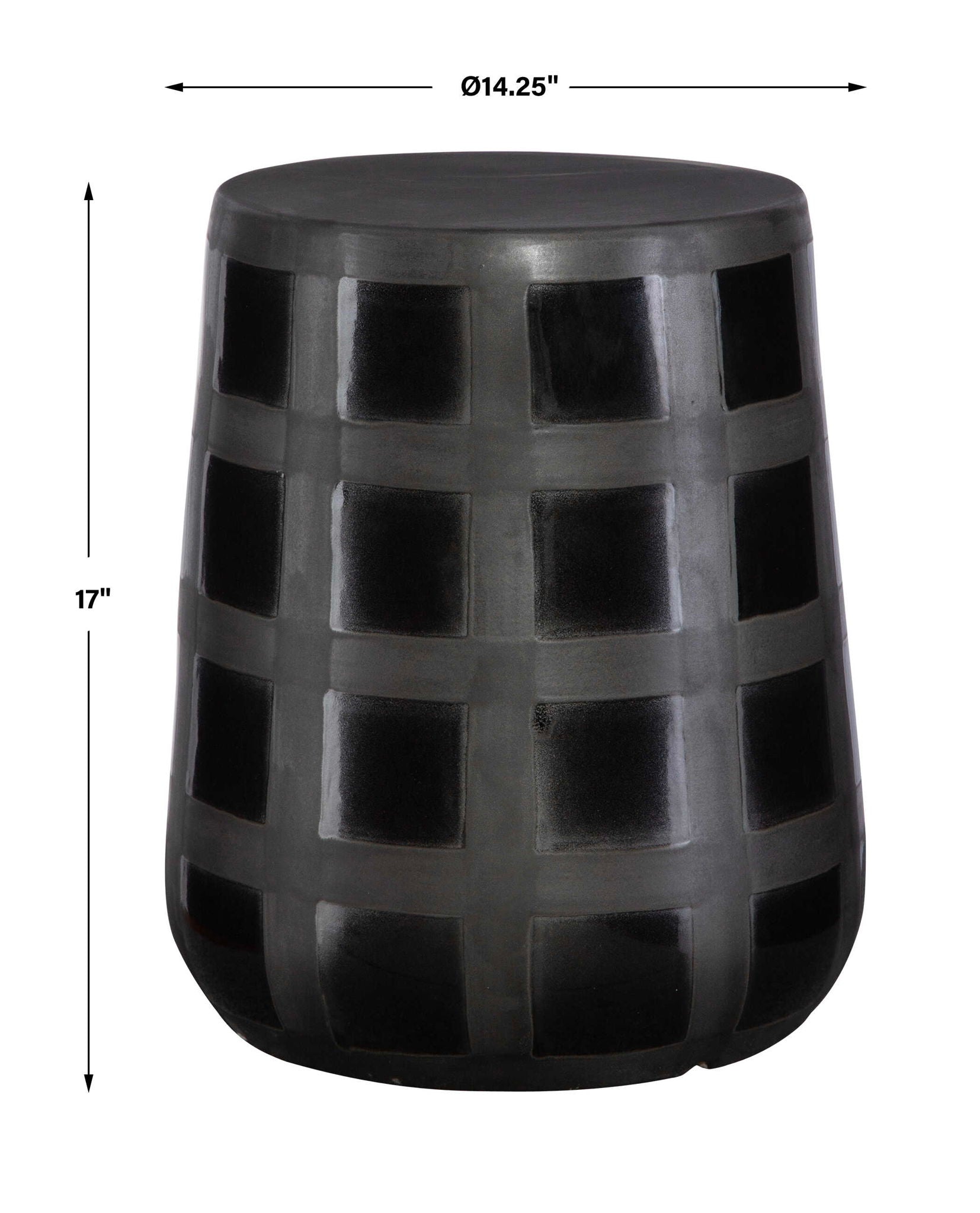 Modern And Multifunctional, This Ceramic Garden Stool Features A Gridded Two Tone Effect Created By Gloss And Matte Black Glazes. May Be Used Outdoors, But Protection From Freezing Temperatures Is Recommended.