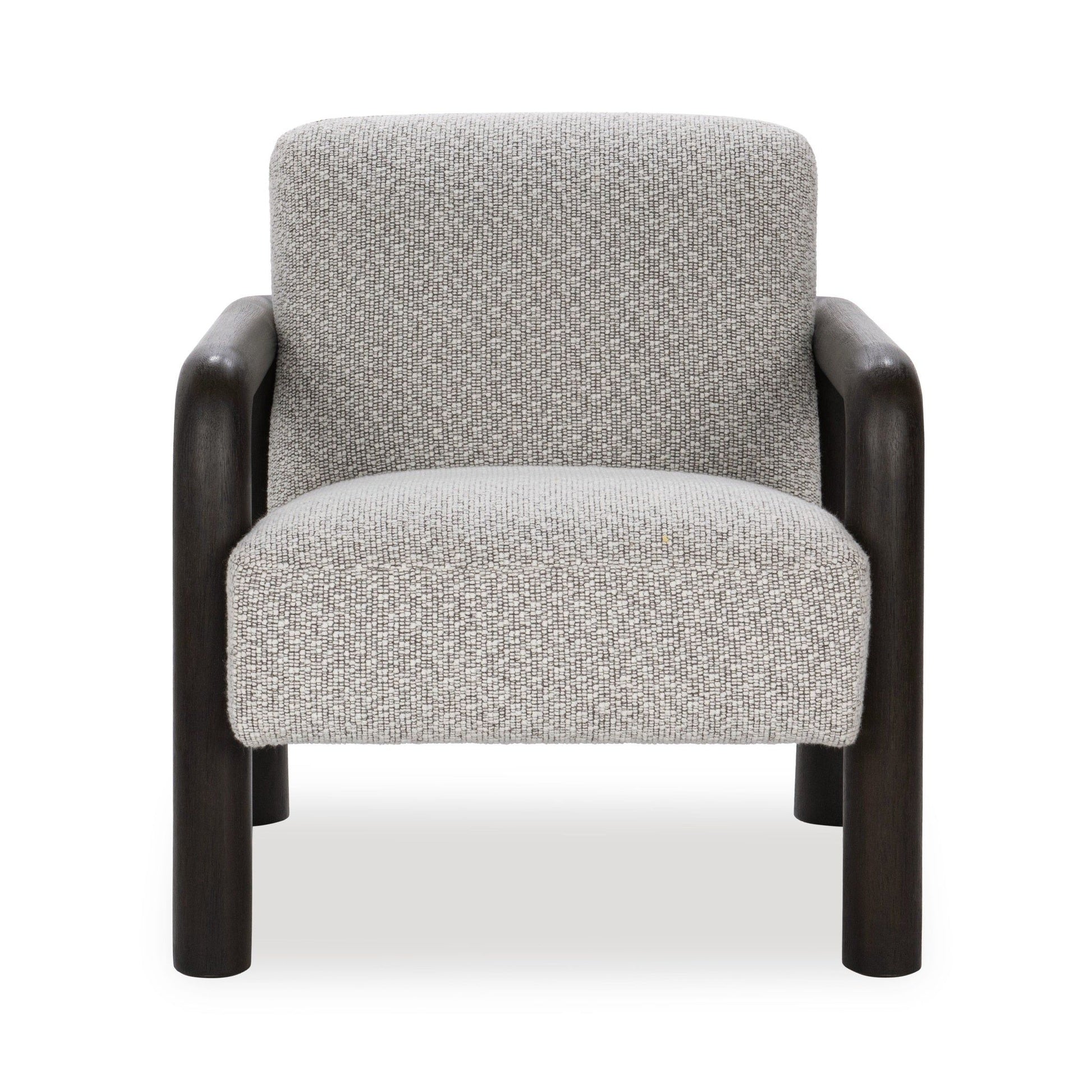 Elevate your decor with a modern accent arm chair featuring a durable rubber wood frame and sumptuous plush wool blend fabric seat. Rounded arms and clean lines deliver a cozy, durable lounging experience in living rooms and bedrooms. Perfect for Scandinavian, rustic, contemporary interiors, this top grain leather and wool blend accent arm chair adds effortless everyday durable style and lasting luxurious comfort.
