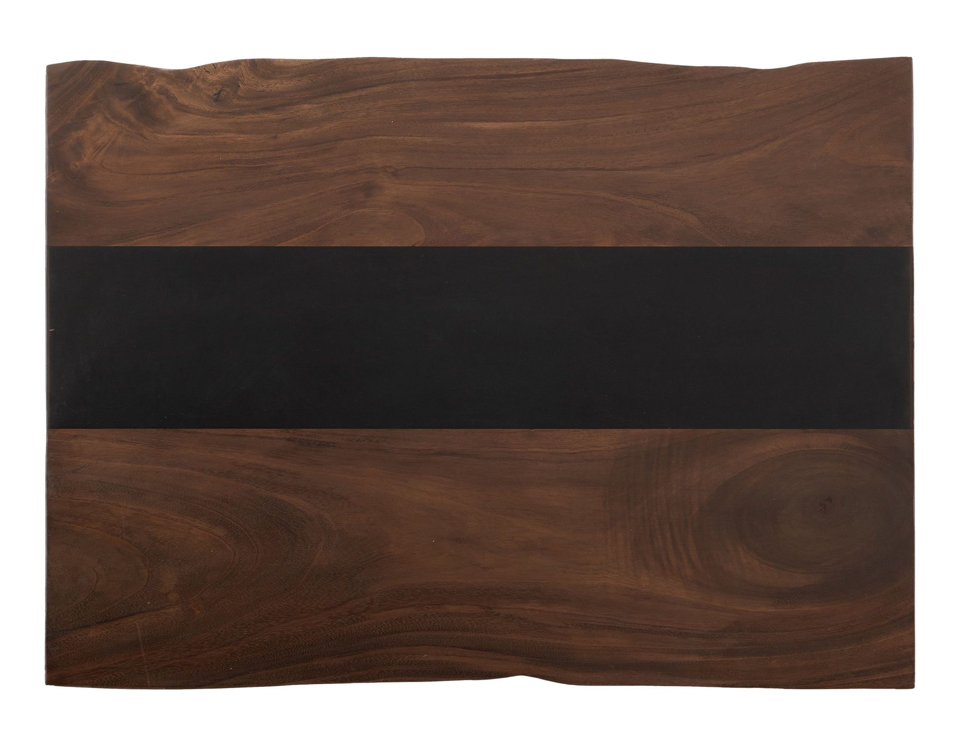 Cocktail Table. The Riverwood occasional tables, meticulously crafted from beautiful parota wood, are a stunning collection that perfectly blends nature with relaxed modern design. Coffee and Sofa table feature a striking central epoxy resin strip that flows through the wood's natural live edges, enhancing its organic appeal while adding a modern flair. The metal legs feature a black matte powder coating that enhances durability and resists corrosion, providing a stable and long-lasting foundation. This makes these tables ideal for everyday use.