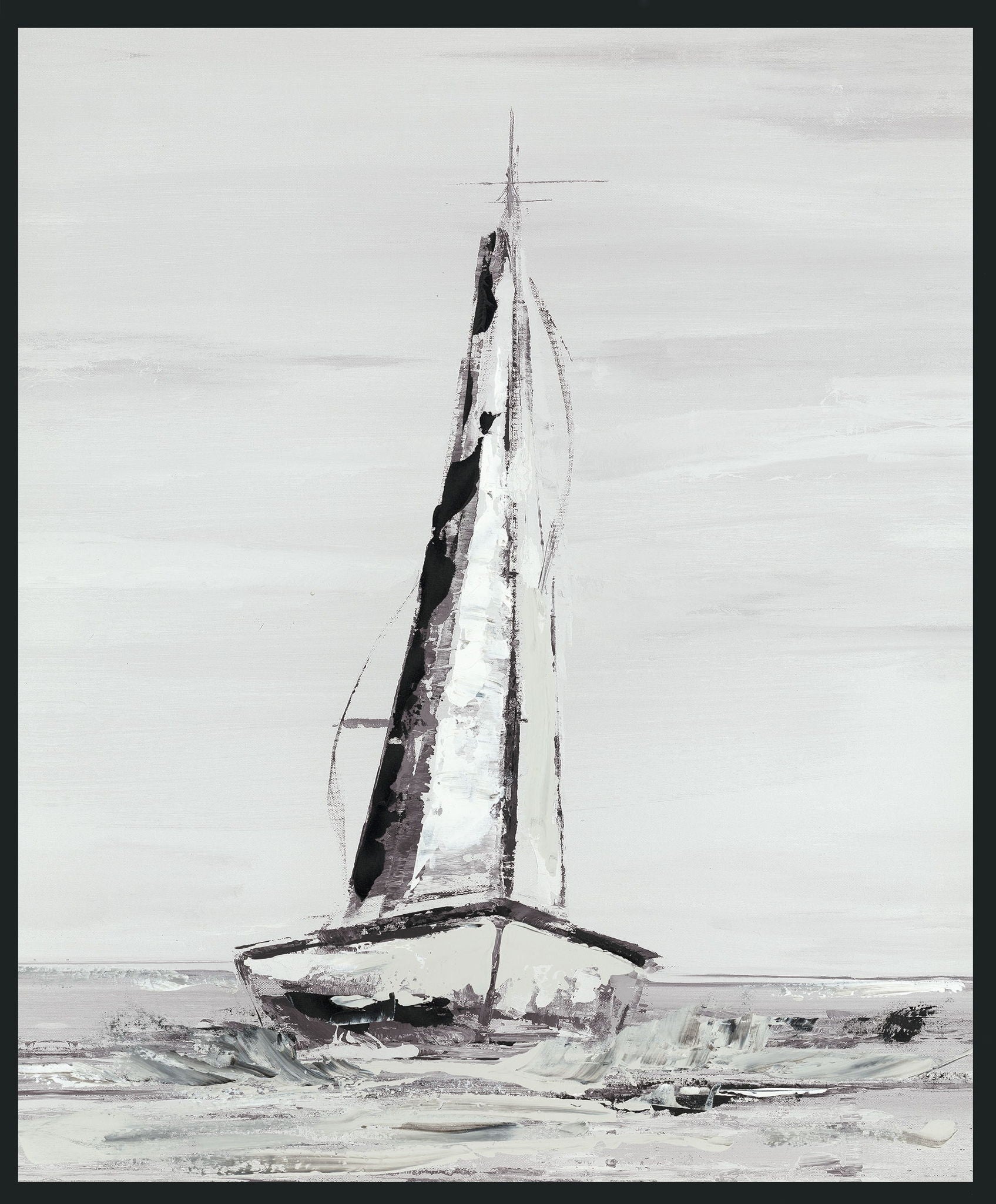 Sails by Buddy Whitlock captures the movement of air and light through bold contrasts and fluid lines. Framed in a thick black shadow frame, it makes a striking statement of energy and grace.