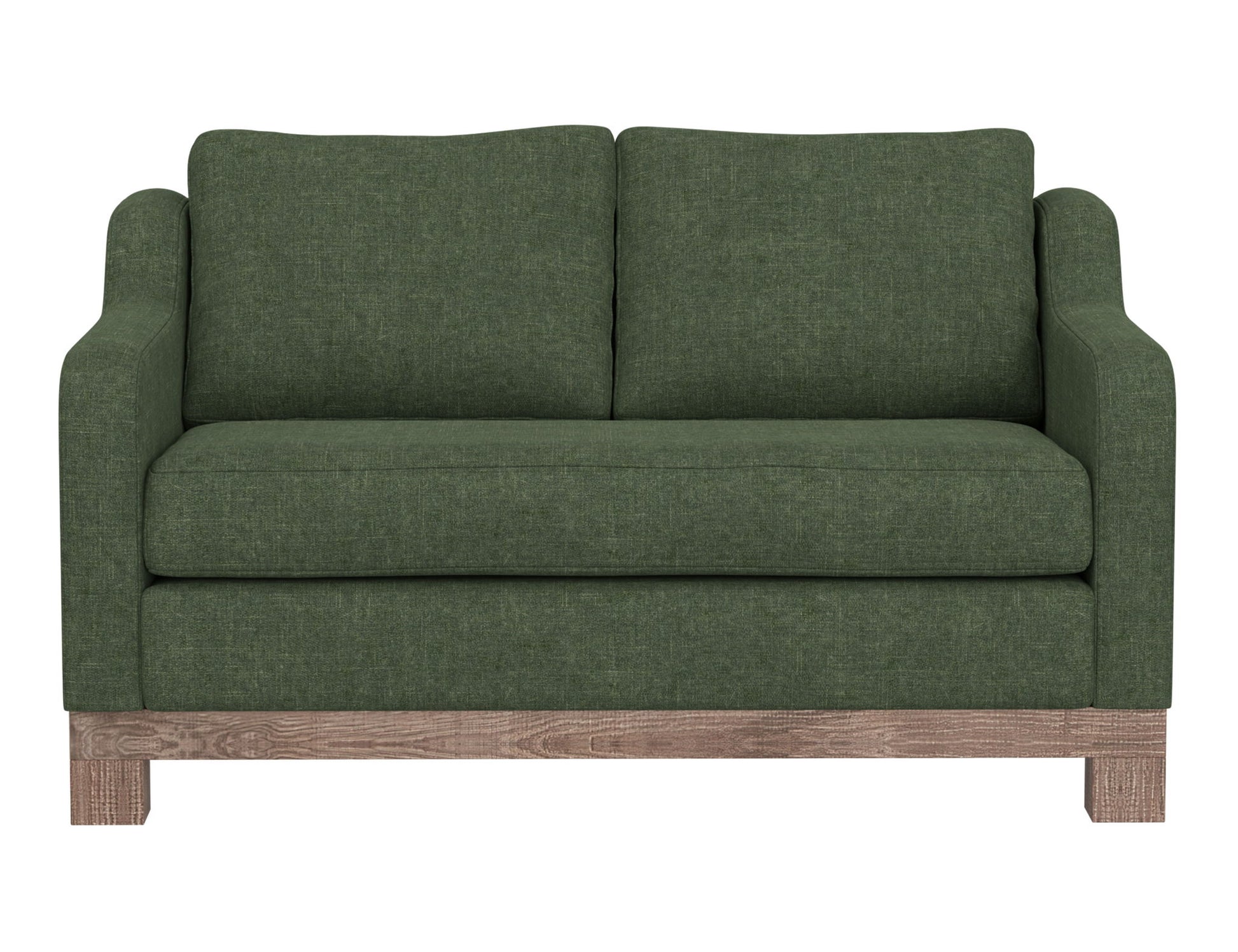 Wooden Frame & Base, Loveseat. With its chunky, wide silhouette, the Samba collection infuses your living room with a touch of traditional charm. Supported by a sturdy frame crafted from solid pine wood, it rests gracefully on low-profile block feet with a rich hue.