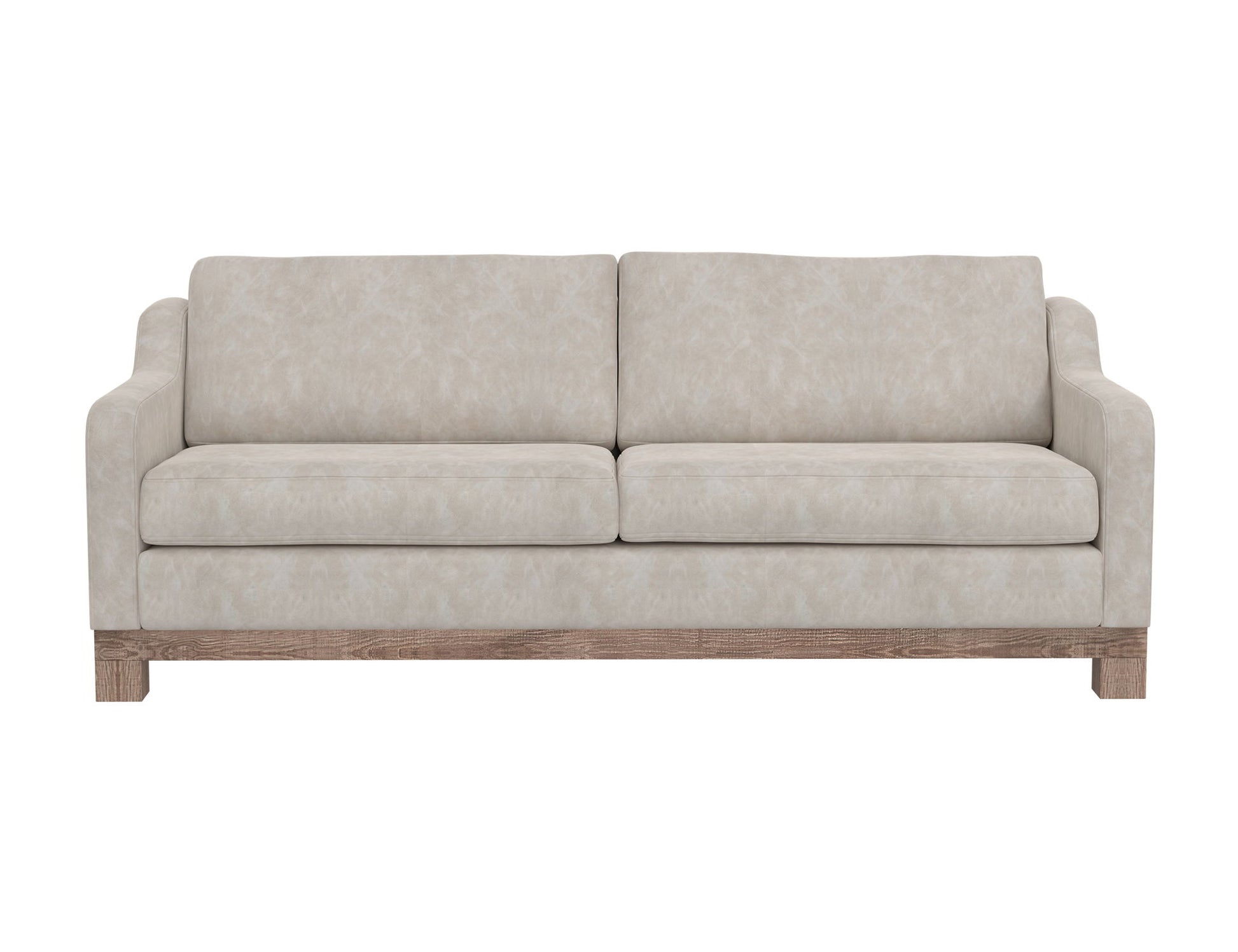 Wooden Frame & Base, Two-Cushion Sofa. With its chunky, wide silhouette, the Samba collection infuses your living room with a touch of traditional charm. Supported by a sturdy frame crafted from solid pine wood, it rests gracefully on low-profile block feet with a rich hue.
