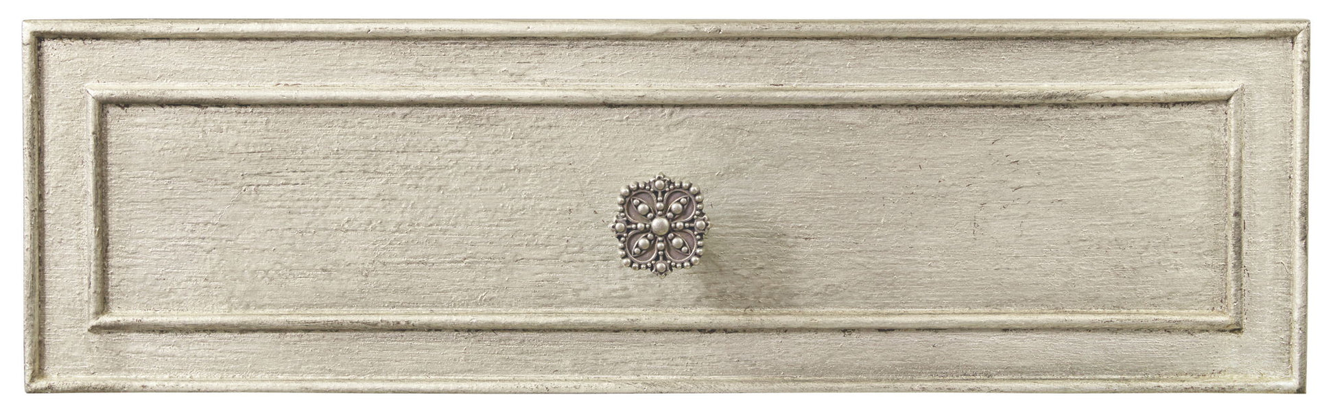 With a luxurious platinum patina and refined design, the versatile Petit Bijou Telephone Table is proof that good things come in small packages. Delightfully functional, the table includes a power bar with 3 electrical outlets and one live USB port. The top drawer has a removable cream-colored felt liner, while the bottom drawer has a cedar-lined bottom. Crafted of Poplar and Hardwood Solids with Oak Veneers, the Gemme is finished in Jewel, a silver with rich undertones of gold and champagne. The decorative jewelry-like hardware is in an antique silver color.