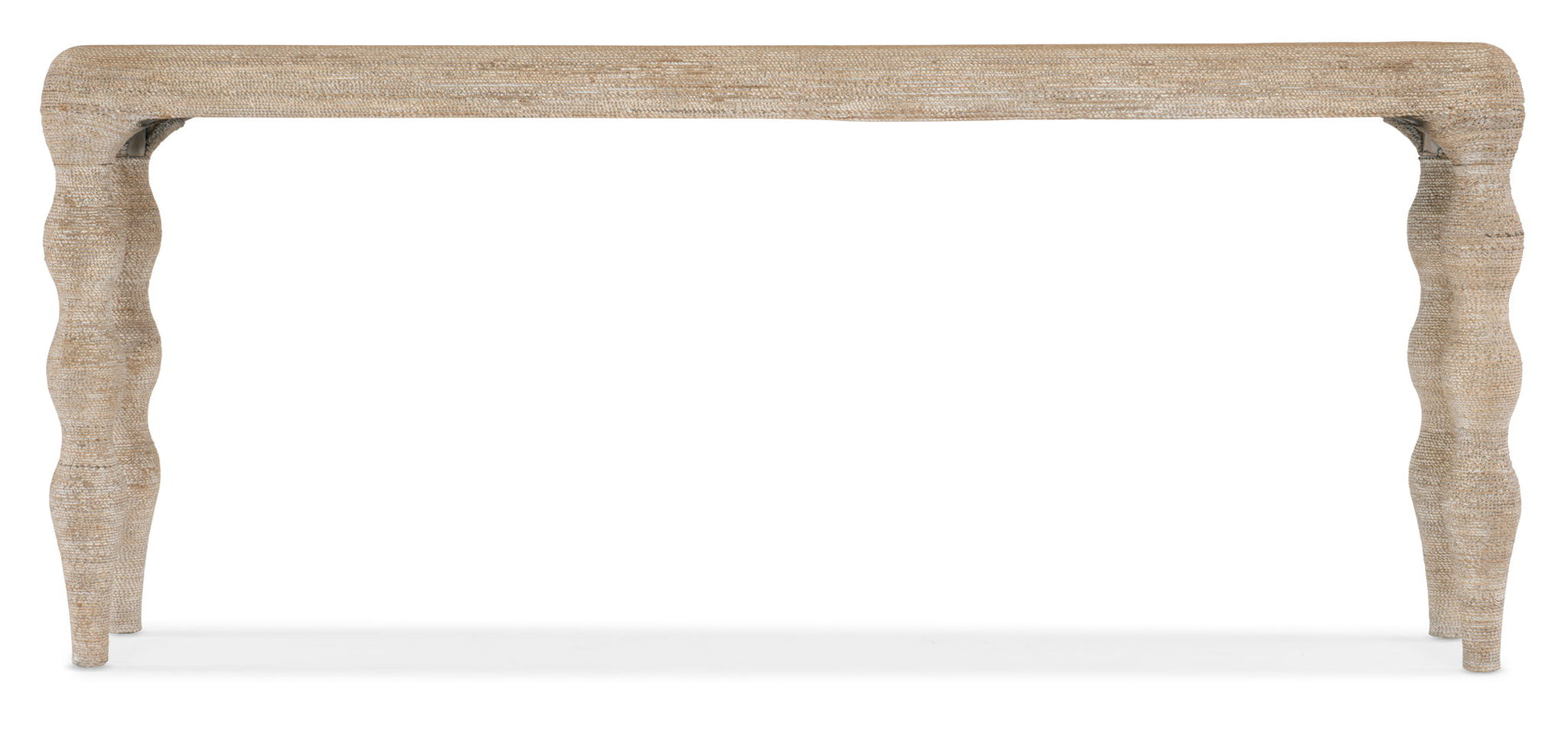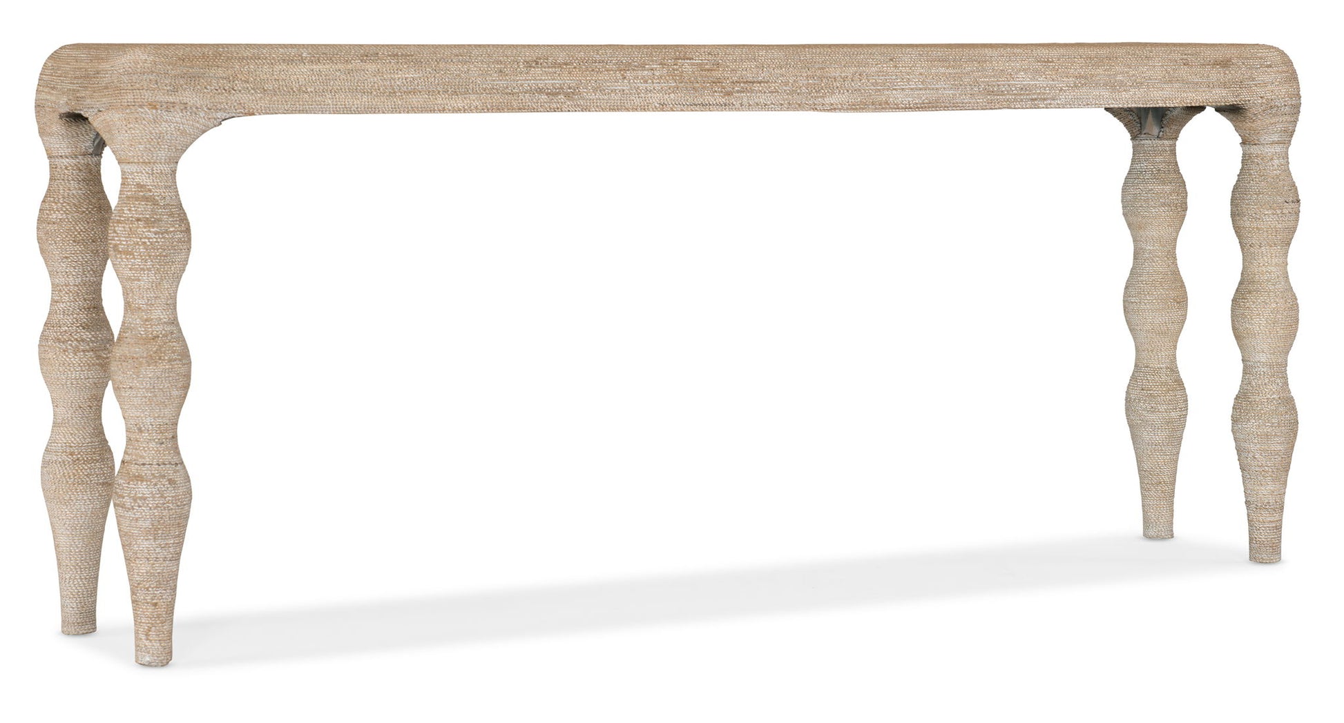 With a refreshing nautical appeal, the Bahari Console Table combines shaped legs wrapped in whitewashed rope with the light and airy wire-brushed Surf finish over Oak Veneers for a look inspired by casual waterfront living. At only 15 inches deep, this striking piece fits well even in narrow spaces.