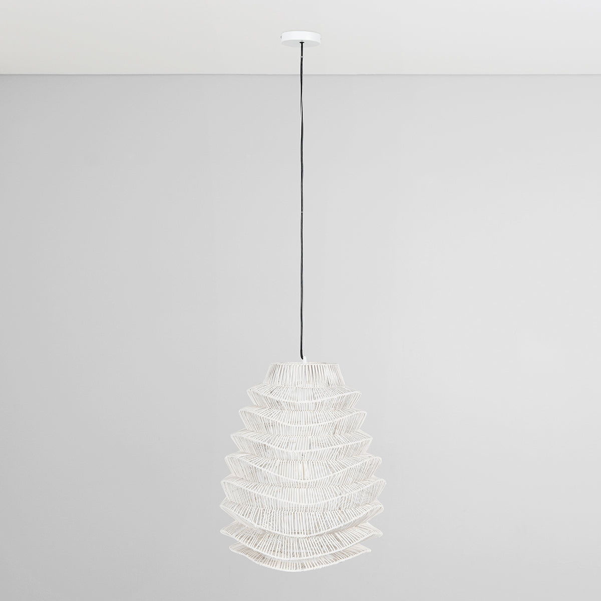 With its light, airy design, the Shelly Pendant features woven vine accents wrapped in an iron frame. Its white finish brings a fresh, coastal feel to any room. A refined blend of natural texture and minimalist style. Available in Black and White.