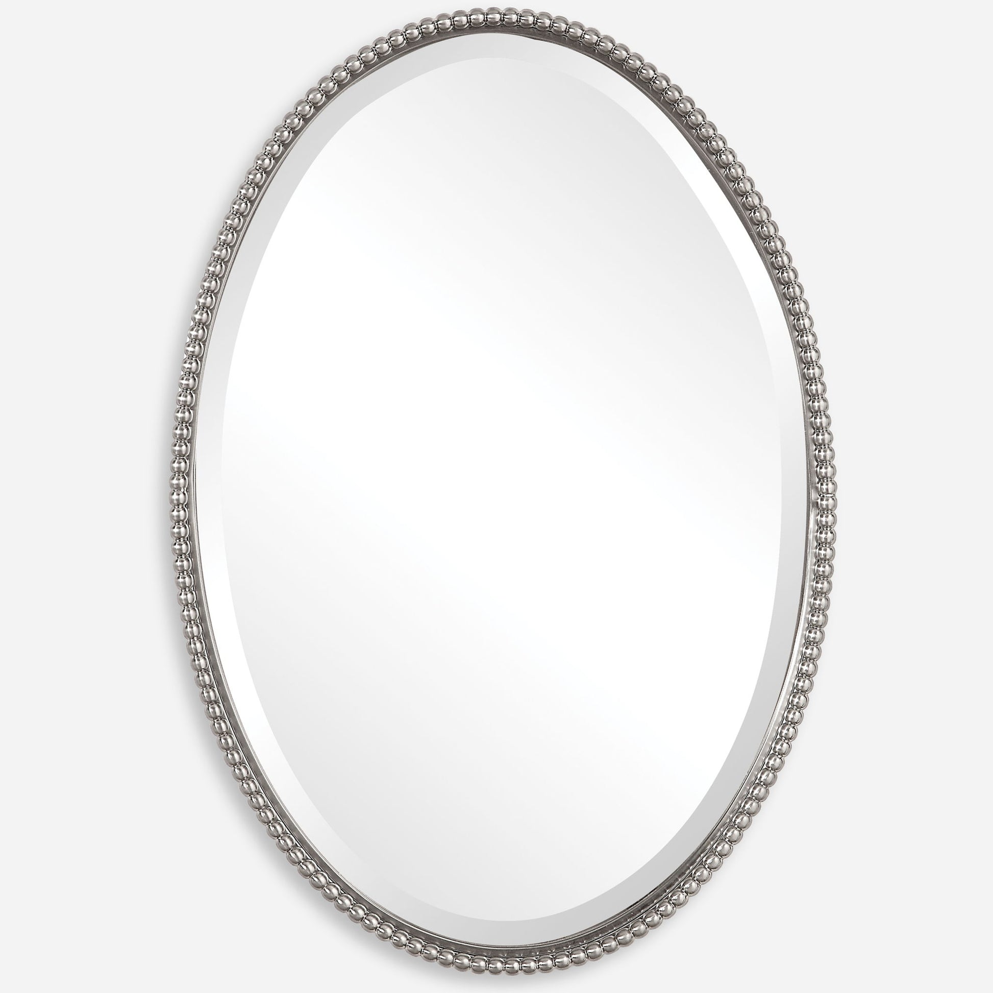 This Oval Mirror Features A Frame Made Of Hand Forged Metal With A Brushed Nickel Finish. Mirror Is Beveled And May Be Hung Horizontal Or Vertical.