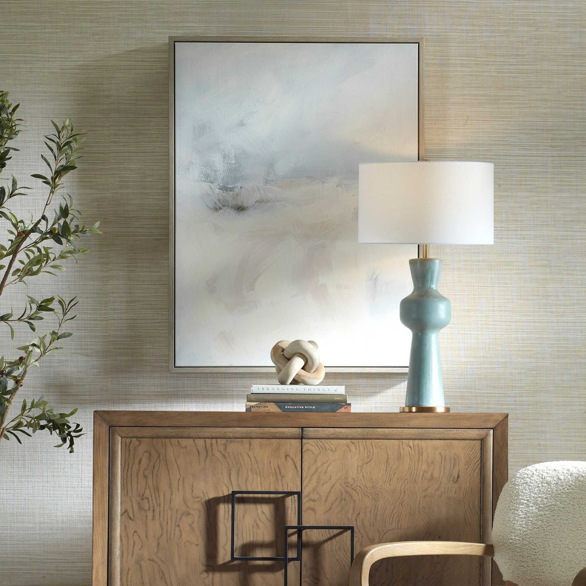 Simple Serenity - Framed Abstract Art - White / Light Blue
