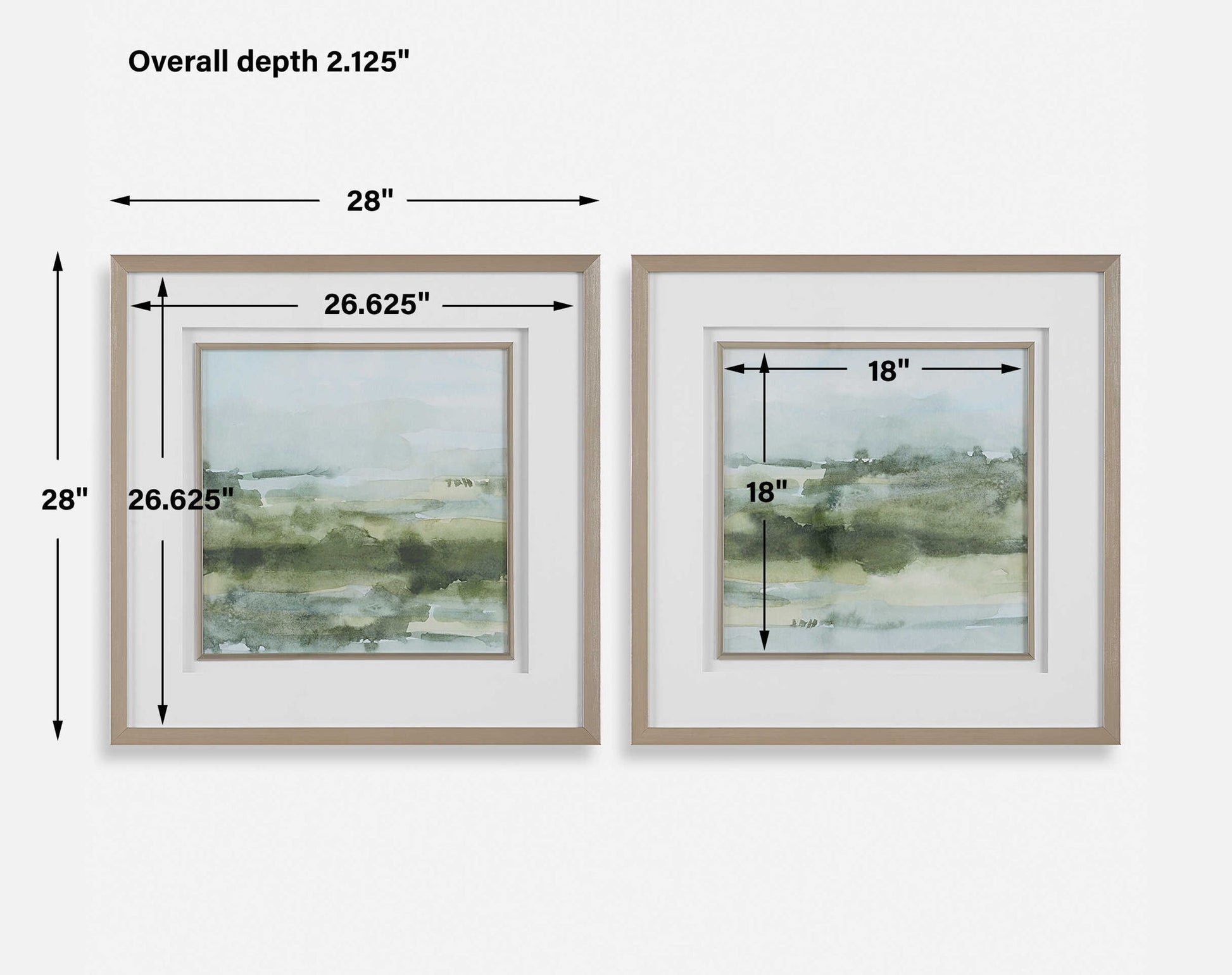 Discover The Calming Allure Of Soft Sage Framed Prints. This Abstract Landscape Showcases Shades Of Lush Green From Olive To Sage. The Prints Are Perfectly Complemented By A Brushed Champagne Gold Frame With Matching Fillet, Double White Mat And Placed Under Protective Glass. Ideal For Bringing A Peaceful And Sophisticated Touch To Your Decor. Artwork By Emma Caroline.