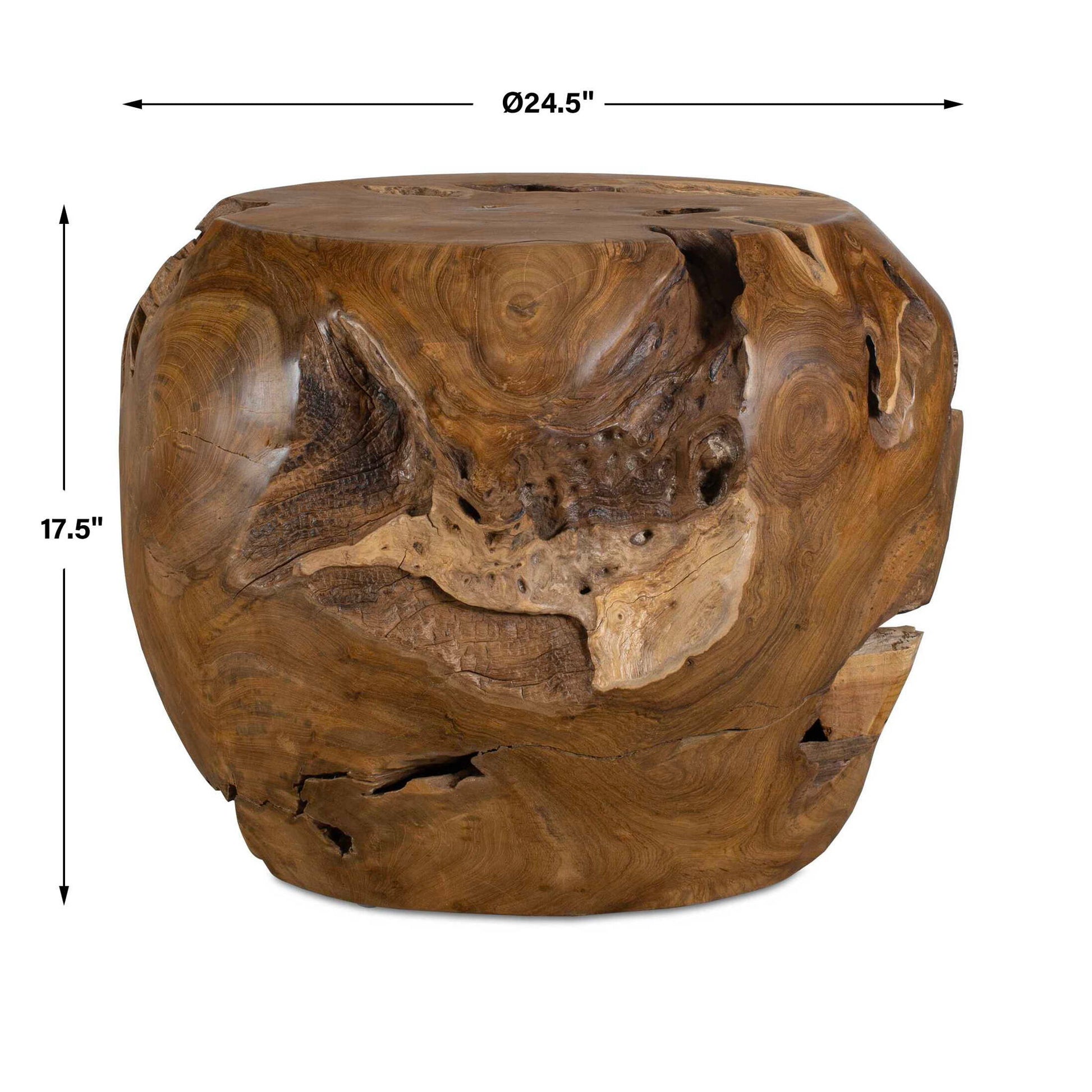 Formed By Nature The Sola Side Table Provides Organic Beauty And Function In A Natural Teak, Serving As A Decorative Art Piece While Smoothed On Top For Functionality. Each Will Vary In Size Due To Being Uniquely Handcrafted. Cracks And Variations In Grain Are Normal. Suitable For Both Indoor And Outdoor Use.
