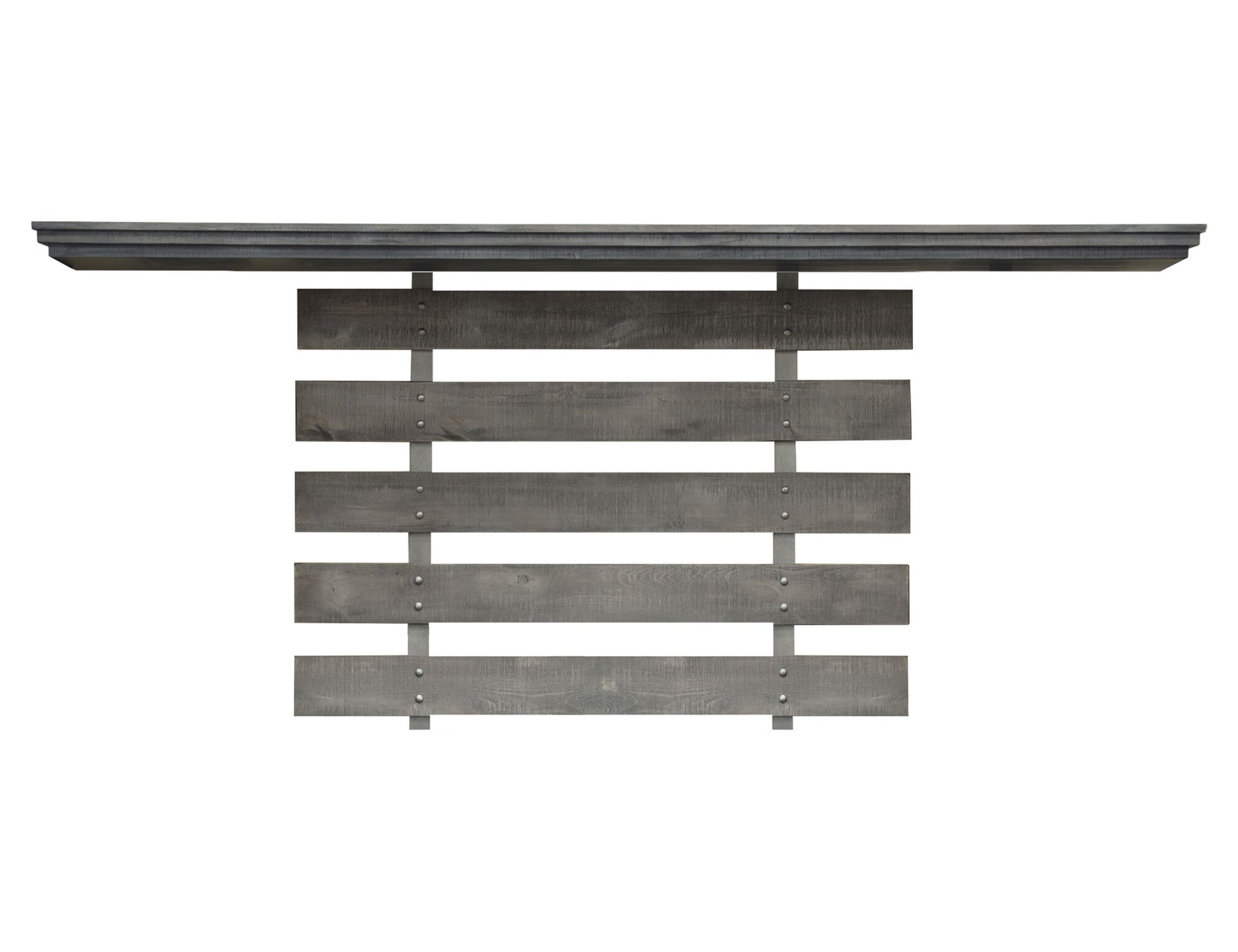 - Two-tone, multi-step lacquer finish. The top features a weathered gray finish on hand-distressed wood, while the rest of the case has an eggshell antiqued finish.