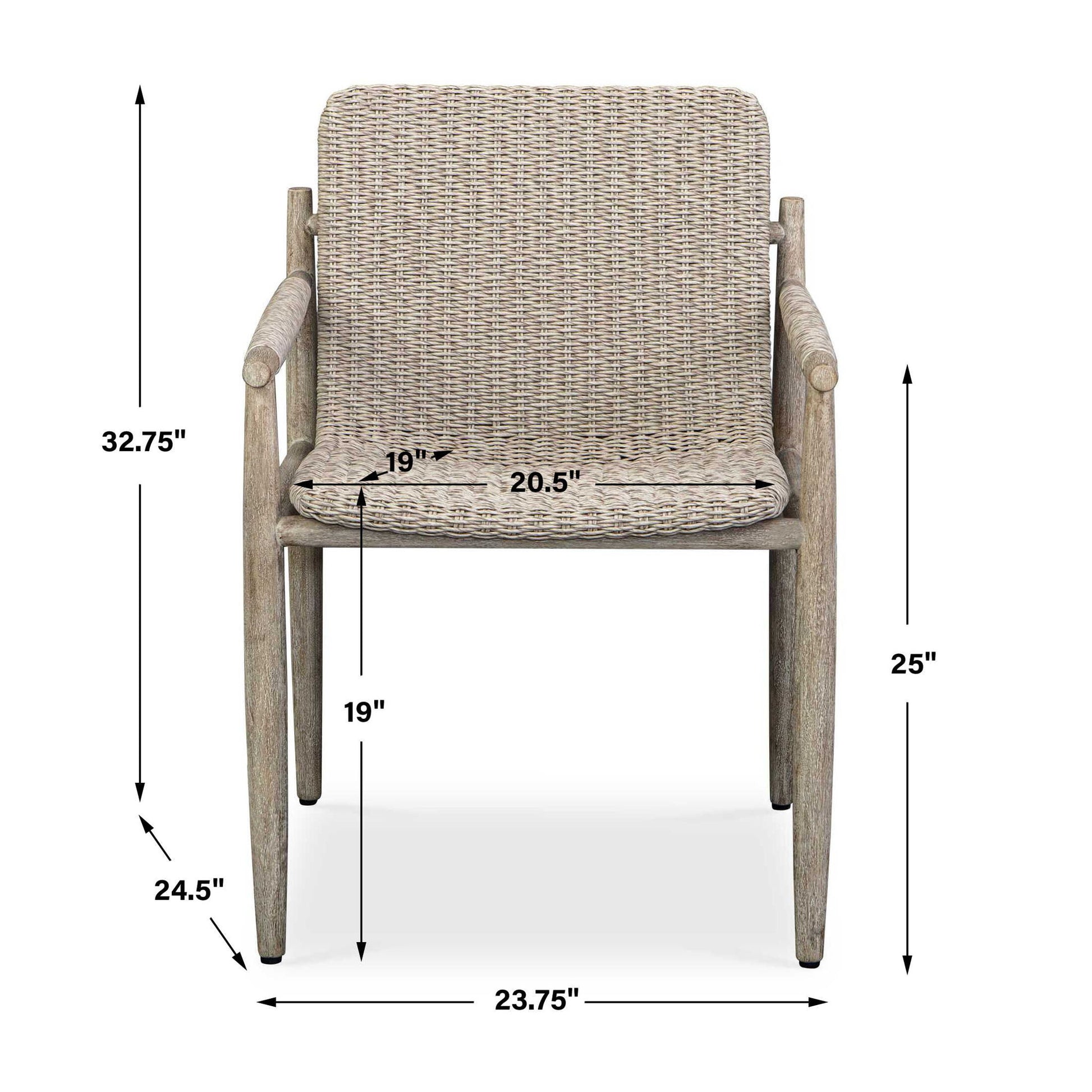 Indulge In Comfort With The Stylish Sumba Outdoor Dining Chair. The Continuous Scooped Seat In Twisted Oatmeal All-weather Wicker Offers A Relaxing Feel, Cradled By The Durable Mahogany Wood Frame Finished In Cerused Wheat, Ensuring Long-lasting Use.
