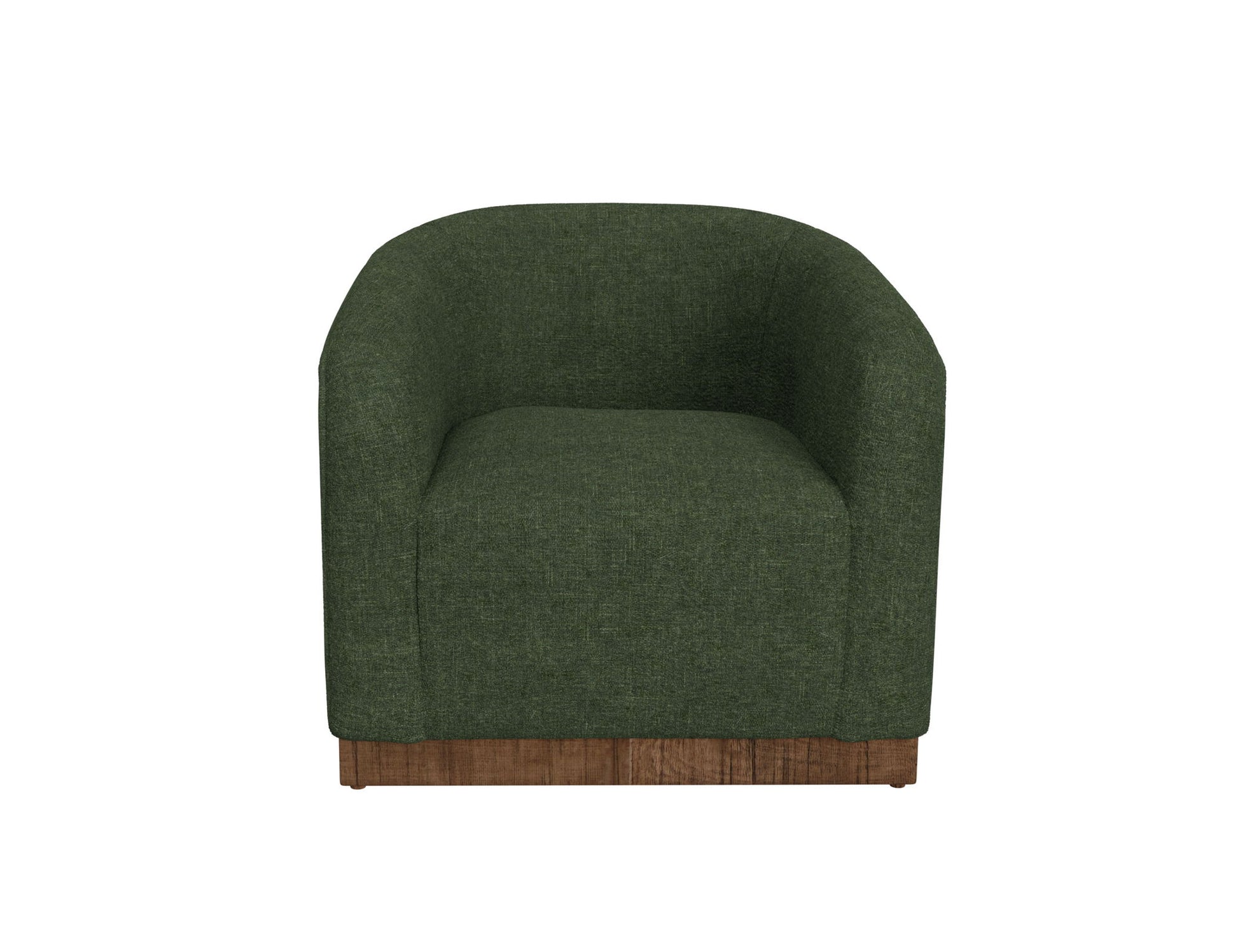 Wooden Frame & Base, Armchair. The Suomi Collection, distinguished by its flowing form, embodies the Zen-inspired Japandi style. This armchair's minimalist design is harmoniously complemented by its wooden base crafted from pine wood, with its wraparound back seamlessly merging into rounded arms, creating a cradle for an exceptionally thick and comfortable cushioned seat