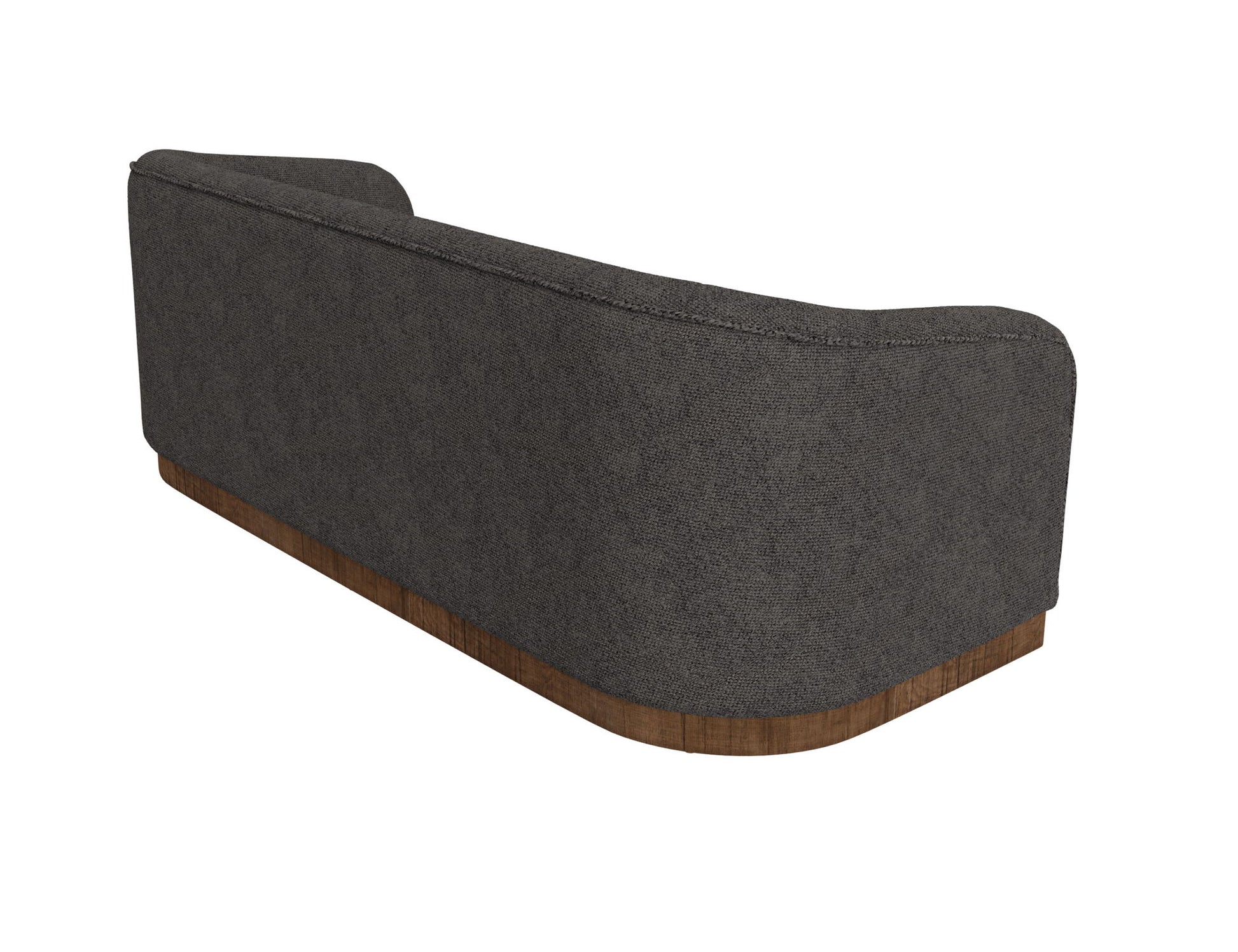 Wooden Frame & Base, Sofa. The Suomi Collection, distinguished by its flowing form, embodies the Zen-inspired Japandi style. This sofa minimalist design is harmoniously complemented by its wooden base crafted from pine wood, with its wraparound back seamlessly merging into rounded arms, creating a cradle for an exceptionally thick and comfortable cushioned seat