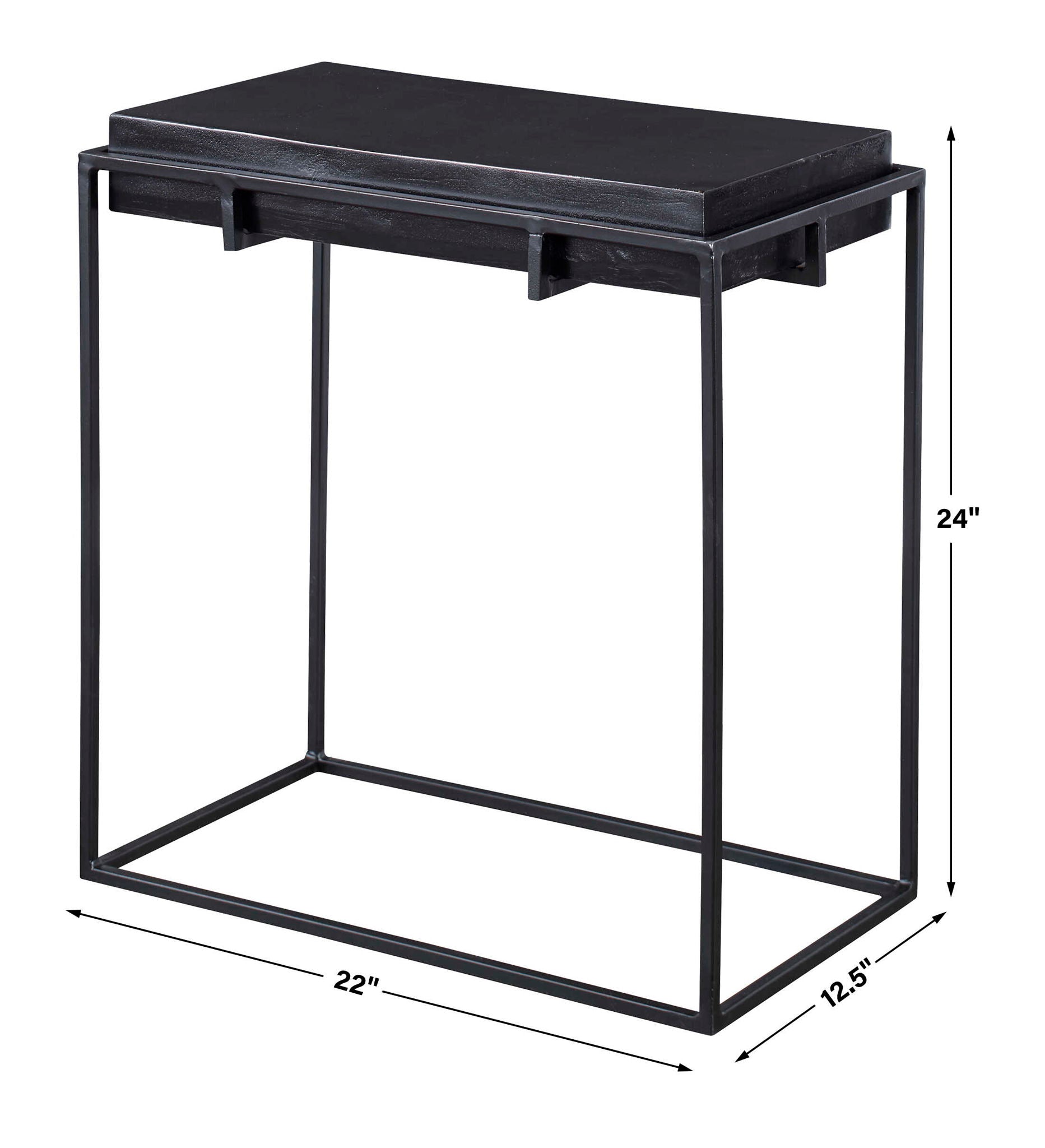 With Modern Minimalist Styling, This Side Table Features A Thick Cast Aluminum Top With Natural Texturing Finished In A Plated Antique Black, Resting In A Coordinating Aged Black Iron Base.