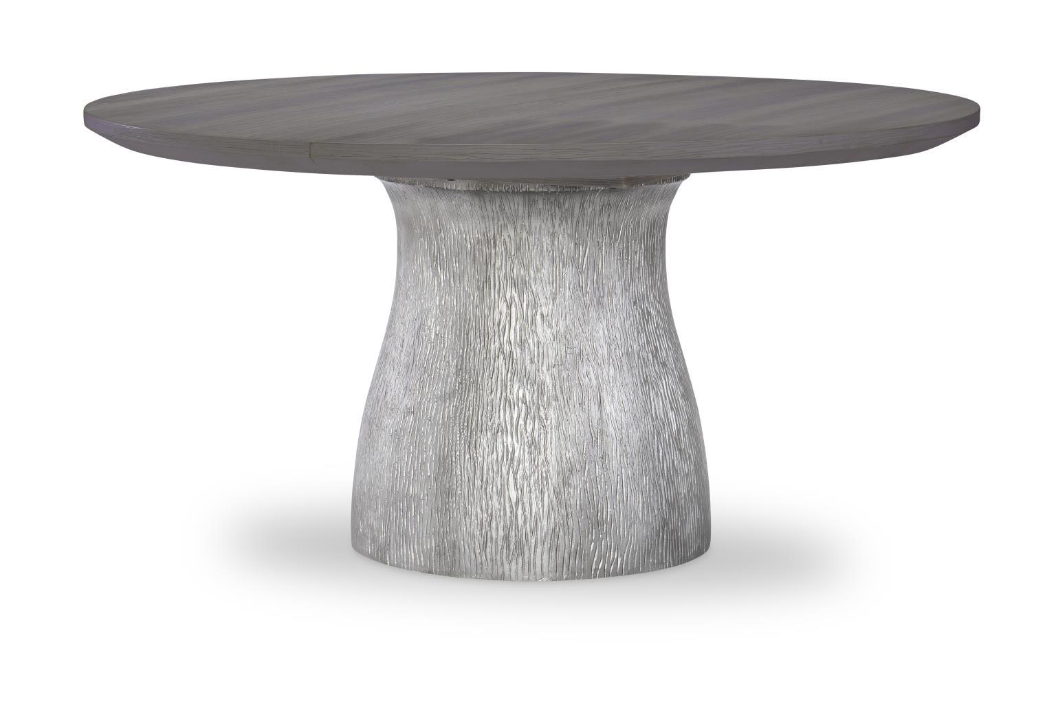 Angular modern shapes organic textures and mixed materials combine with a gray cream and metallic color palette to create a crisp modern look in the Terra Luna whole home furniture collection. The deeply wire-brushed Nightfall finish gives a tactile dimensional texture contrasting with the White Cloud case fronts and upholstery and metallic-finished table and chair bases. Over scaled jewelry-like Polished Nickel hardware adds a glam touch. The clean silhouettes paired with natural color tones and organic textures give a minimalist yet inviting appeal.
