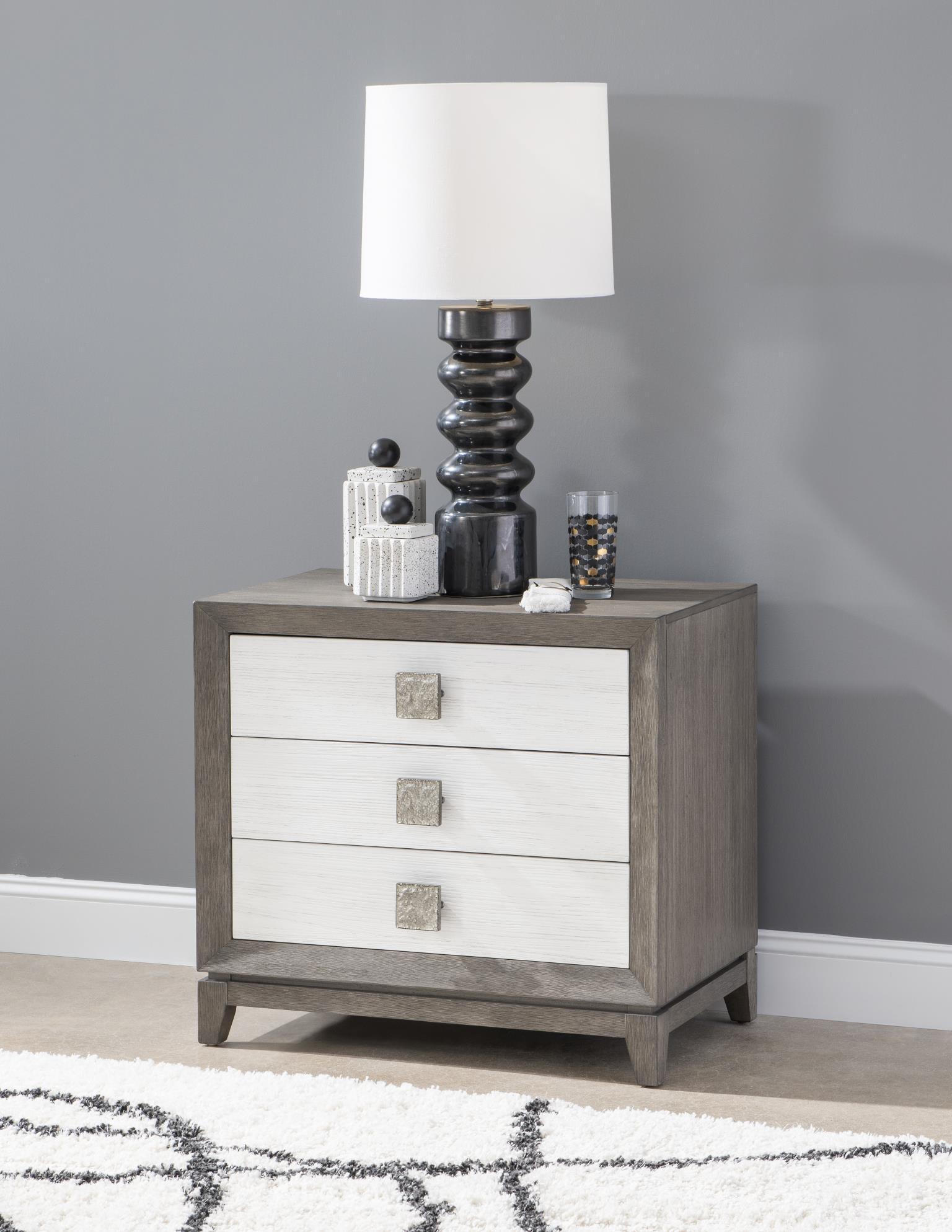 Terra Luna - Nightstand - 3 Drawers -Midnigh hite Cloud - White Cloud & Nightfall