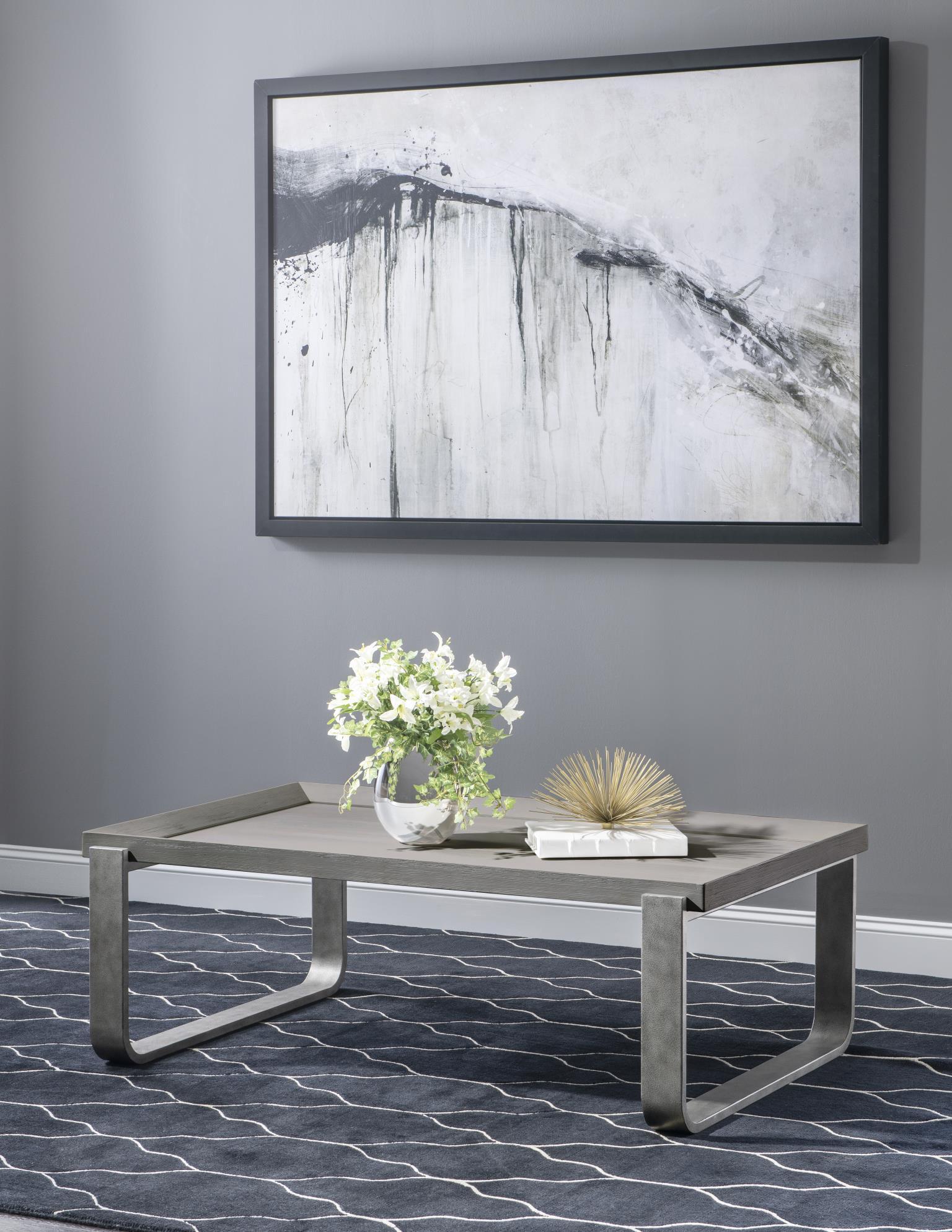 Angular modern shapes,, organic textures and mixed materials combine with a gray,, cream,, and metallic color palette to create a crisp modern look in the Terra Luna whole home furniture collection. The deeply wire-brushed Nightfall finish gives a tactile,, dimensional texture,, contrasting with the White Cloud case fronts and upholstery and metallic-finished table and chair bases. Over scaled,, jewelry-like Polished Nickel hardware adds a glam touch. The clean silhouettes paired with natural color tones and organic textures give a minimalist yet inviting appeal.