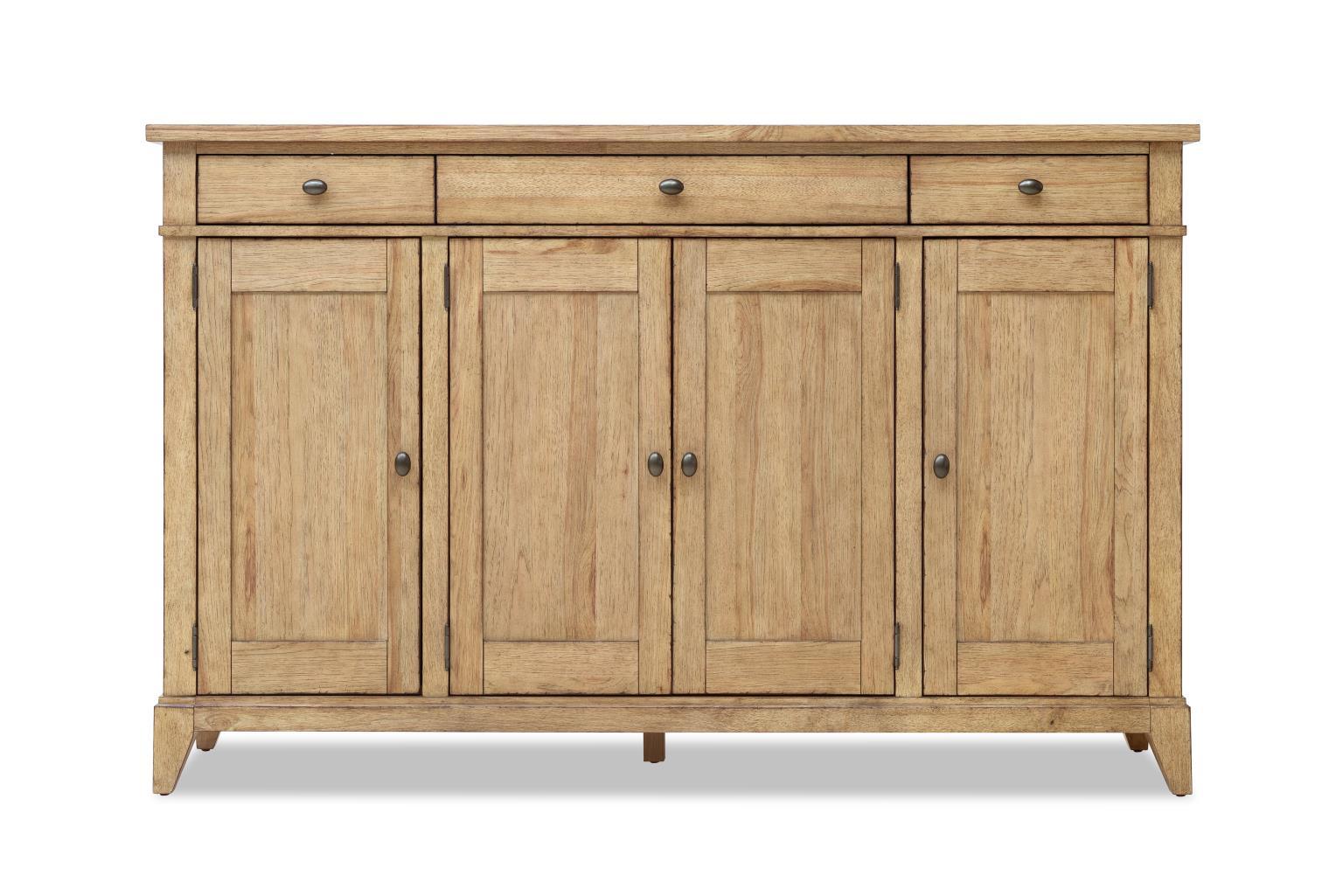 Today's Traditions by Trisha Yearwood features two distinct finishes to accompany oiled bronze hardware. The style of the collection is updated traditional with a nod to historical Shaker influences. The upper case of the pieces has slight banding to give dimension and eye appeal and the legs are tapered. The collection also features random board selection for a vintage feel and soft distressing to give a "generational" appearance. Overall this collection combines traditional design elements and modern touches with a vintage feel to create a unique and stylish look.