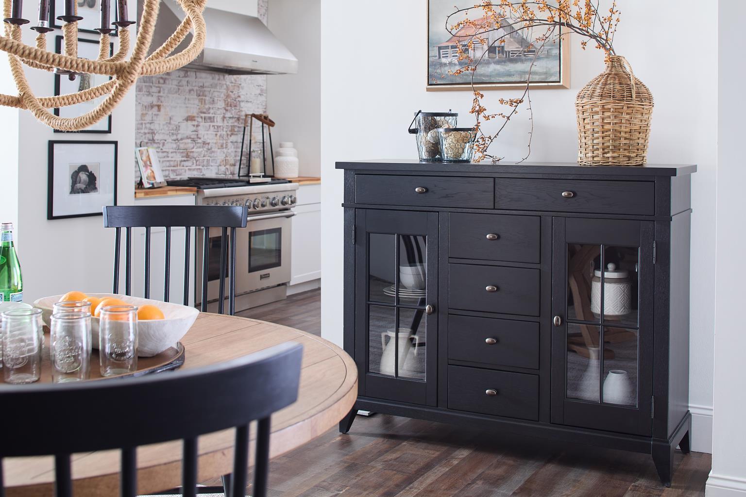 Today's Traditions by Trisha Yearwood features two distinct finishes to accompany oiled bronze hardware. The style of the collection is updated traditional with a nod to historical Shaker influences. The upper case of the pieces has slight banding to give dimension and eye appeal and the legs are tapered. The collection also features random board selection for a vintage feel and soft distressing to give a "generational" appearance. Overall this collection combines traditional design elements and modern touches with a vintage feel to create a unique and stylish look.