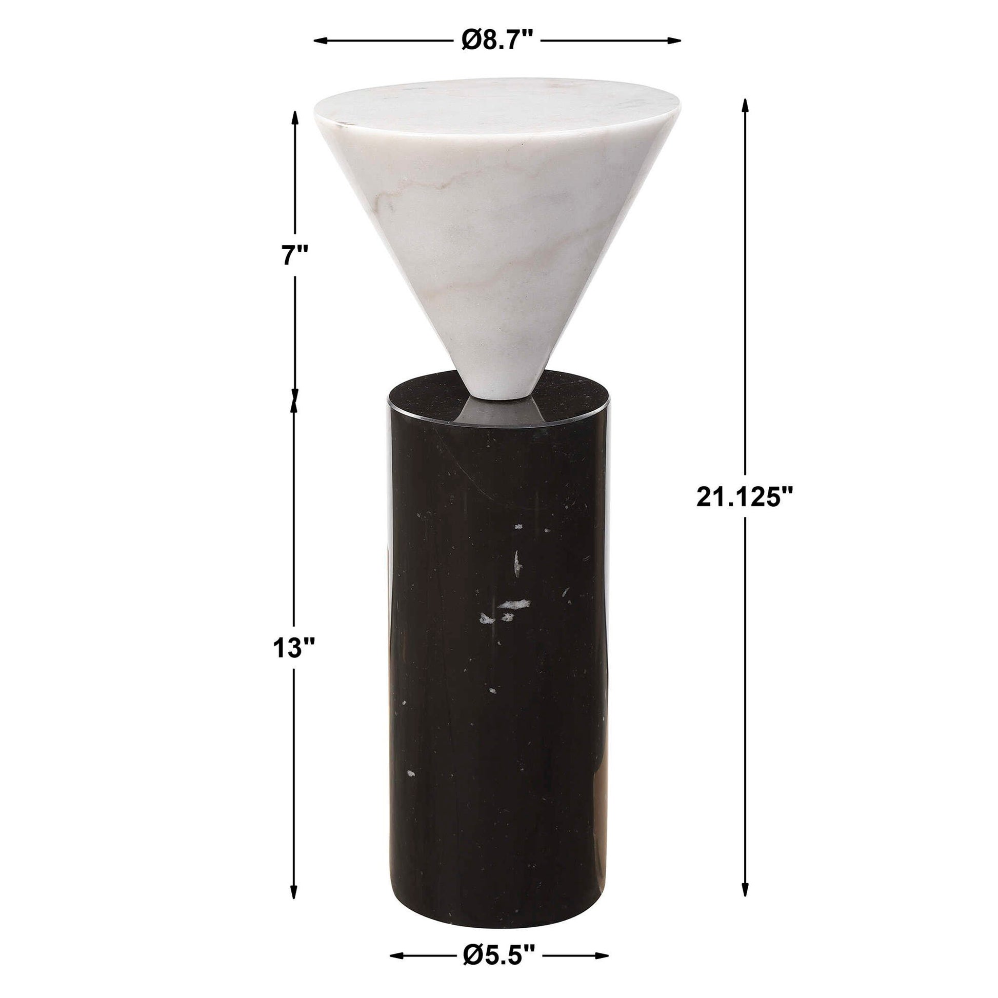A Juxtaposition Of Modern Shapes, This Stylish Drink Table Features Solid Marble In Luxurious Black And White. True To The Nature Of Natural Materials, Each Piece Will Have Unique Marbling And Veining Throughout.