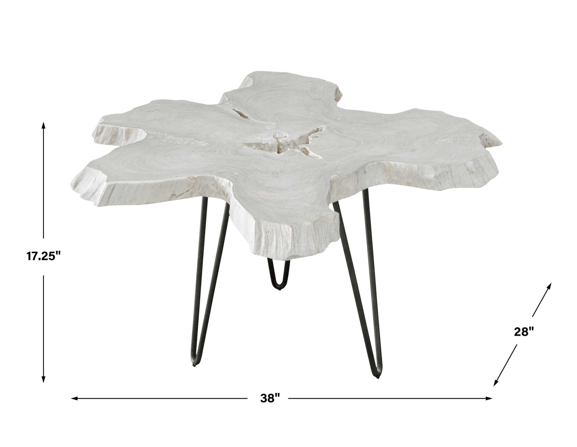 This Striking Coffee Table Is Topped With A Cross Section Of Natural Teak Wood In A Bleached Finish Supported By Black Metal Hairpin Legs. Sizes And Grain Pattern May Vary Due To The Authentic Nature Of The Design.