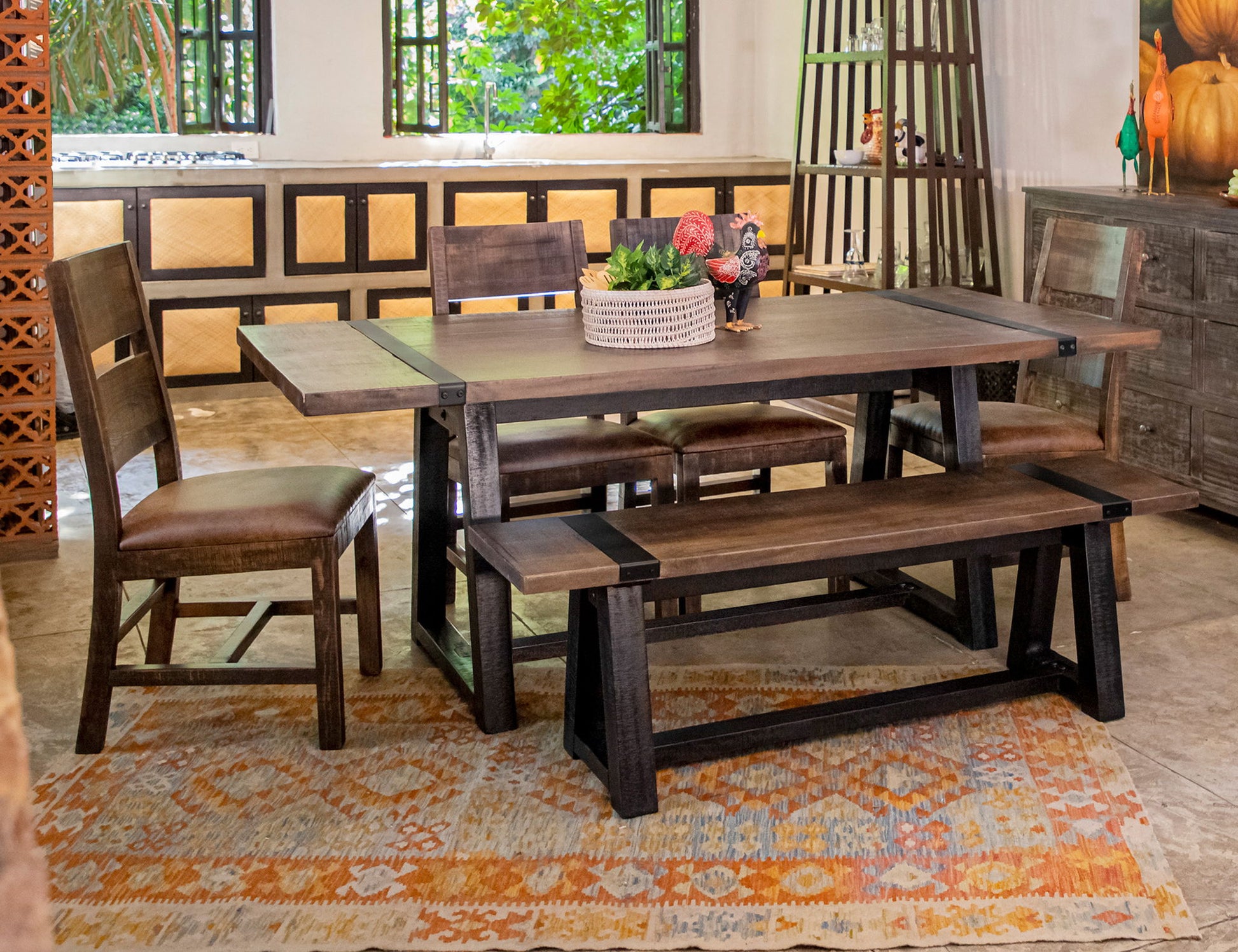 Solid Wood Table Top. The Urban Art collection draws inspiration from industrial design. Crafted from mango wood and meticulously finished by our artisans, each piece showcases a deep brown tone, adding warmth and character to any space.