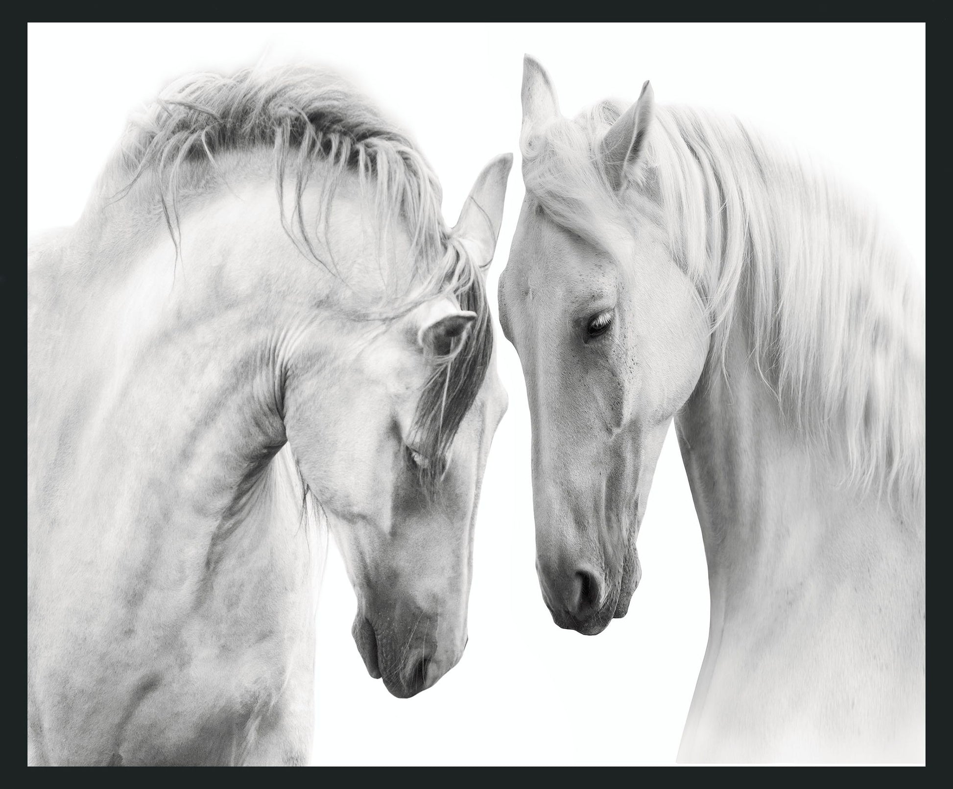 White Horses photography captures a moment of power and grace, as these majestic creatures move with energy and elegance. Framed in a thick black shadow frame, it brings natural dynamism to any space.